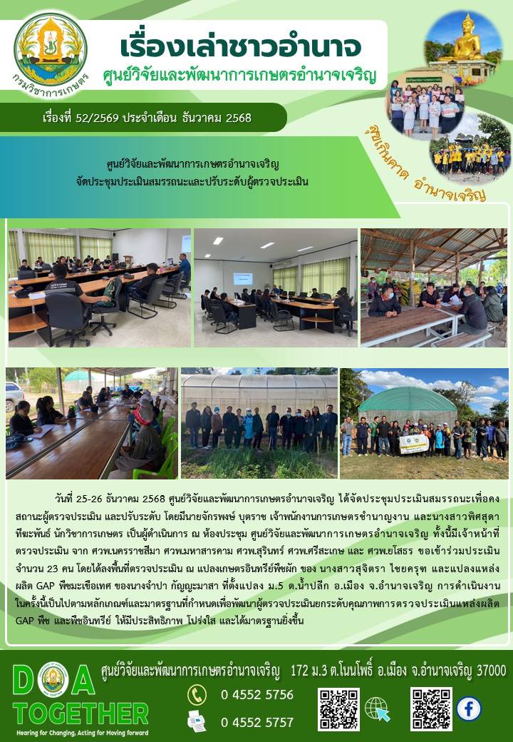 ข่าวกิจกรรม ศูนย์วิจัยและพัฒนาการเกษตรอำนาจเจริญ จัดประชุมเพื่อประเมินสมรรถนะ เพื่อคงสถานะและปรับสมรรถนะ หัวหน้าผู้ตรวจประเมินแหล่งผลิต GAP พืช และพืชอินทรีย์26 ธันวาคม 202526 ธันวาคม 2025