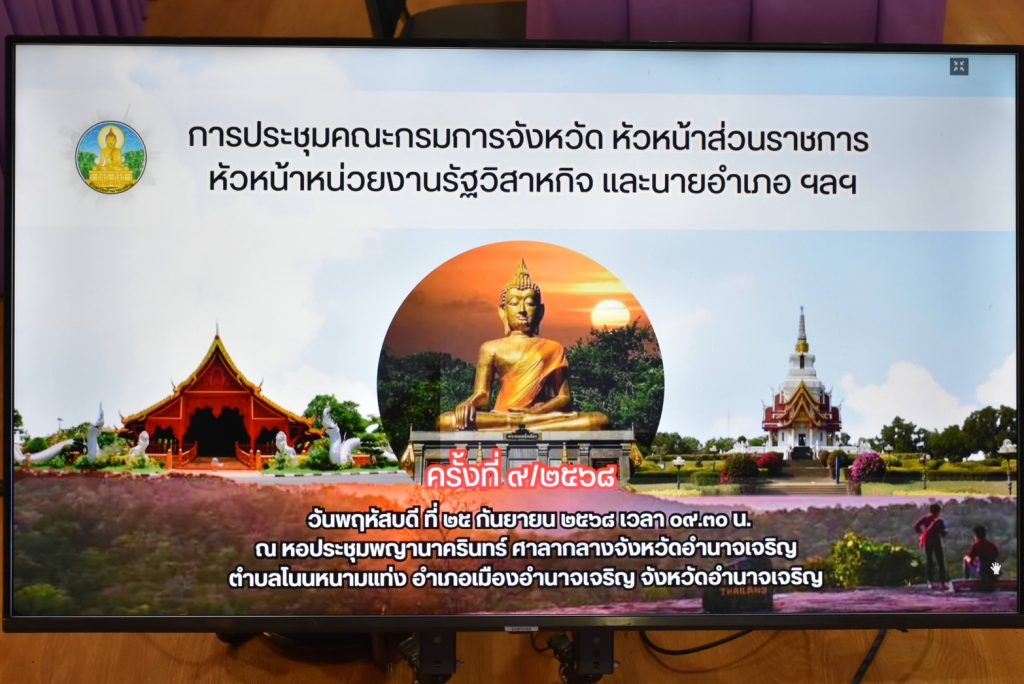 วันพฤหัสบดีที่ 25 กันยายน 2568 เวลา 09.30 น. นางสาวศิริรัตน์ กัญญามา เจ้าพนักงานธุรการปฏิบัติงาน เข้าร่วมการประชุมหัวหน้าส่วนราชการ หัวหน้าหน่วยงานรัฐวิสาหกิจ และนายอำเภอ ประจำเดือนกันยายน 2568 ครั้งที่ 9/2568 โดยมีนายณรงค์ เทพเสนา ผู้ว่าราชการจังหวัดอำนาจเจริญ เป็นประธาน และคณะกรมการจังหวัด หัวหน้าส่วนราชการ หัวหน้าหน่วยงานรัฐวิสาหกิจ และนายอำเภอ ฯลฯ เข้าร่วมประชุมเพื่อติดตามผลการดำเนินงานโครงการฯ และกิจกรรมที่สำคัญของจังหวัดอำนาจเจริญ ในรอบเดือน กันยายน 2568 ที่ผ่านมา ณ หอประชุมพญานาครินทร์ ศาลากลางจังหวัดอำนาจเจริญ