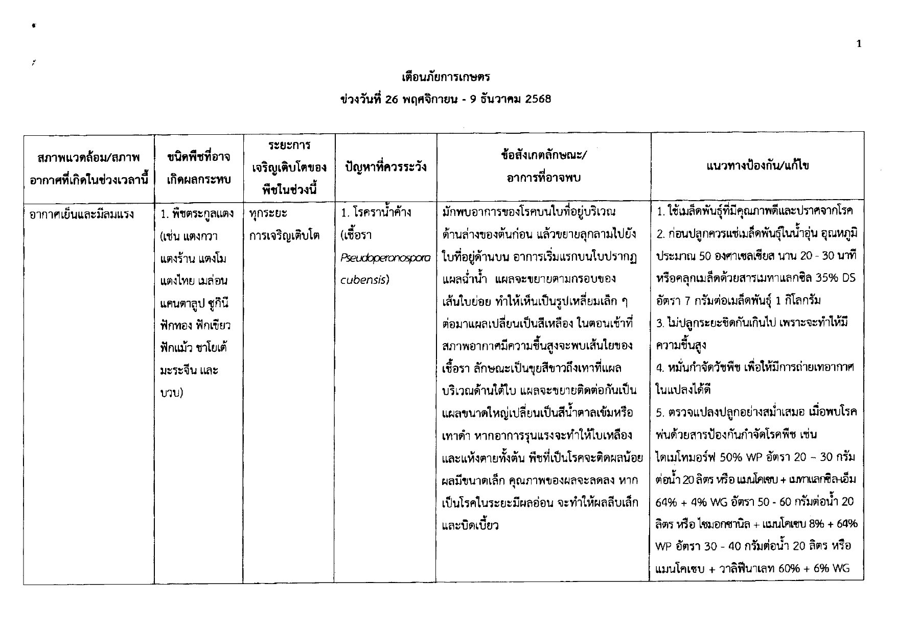 เตือนภัยการเกษตร “เตือนภัยการเกษตร” ช่วงวันที่ 29 ตุลาคม – 11 พฤศจิกายน 256830 ตุลาคม 20254 พฤศจิกายน 2025