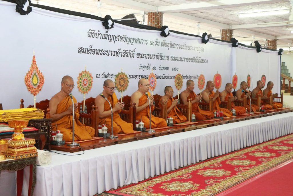 นที่ 12 ธันวาคม 2568 เวลา 13.30 น. นางสาวนันทนา พลสีดา เจ้าหน้าที่การเงินและบัญชี พร้อมด้วยนางสาวกนกพร สัญจรโคกสูง พนักงานประจำสำนักงาน ร่วมพิธีบำเพ็ญกุศลปัญญาสมวาร 50 วัน เพื่ออุทิศ ถวาย เป็นพระราชกุศลแด่ สมเด็จพระนางเจ้าสิริกิติ์ พระบรมราชินีนาถ พระบรมราชชนนีพันปีหลวง โดยมีนายเสนีย์ ส้มเขียวหวาน ผู้ว่าราชการจังหวัดอำนาจเจริญ เป็นประธานในพิธี พร้อมด้วยหัวหน้าส่วนราชการ บุคลากร และประชาชนเข้าร่วมพิธีฯ เพื่อบำเพ็ญกุศลและแสดงความอาลัยในวาระ ครบ 50 วัน (ปัญญาสมวาร) แห่งการสวรรคต ณ ศาลาการเปรียญ วัดสำราญนิเวศ (พระอารามหลวง) อำเภอเมืองอำนาจเจริญ จังหวัดอำนาจเจริญ