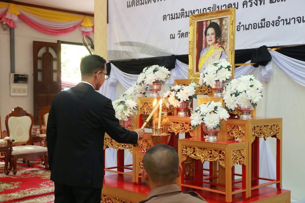 วันที่ 26 ธันวาคม 2568 เวลา 14.30 น. นางสาวนันทนา พลสีดา เจ้าหน้าที่การเงินและบัญชี พร้อมด้วย นางสาวมณีวรรณ เข็มเพ็ชร เจ้าหน้าที่ธุรการ ร่วมพิธีสวดพระพุทธมนต์และเจริญจิตตภาวนา อุทิศ ถวายพระราชกุศล แด่สมเด็จพระนางเจ้าสิริกิติ์ พระบรมราชินีนาถ พระบรมราชชนนีพันปีหลวง โดยมีนายเสนีย์ ส้มเขียวหวาน ผู้ว่าราชการจังหวัดอำนาจเจริญ เป็นประธาน พร้อมด้วยหัวหน้าส่วนราชการ บุคลากร และประชาชนเข้าร่วมพิธีฯ เพื่อถวายเป็นพระราชกุศลแด่สมเด็จพระนางเจ้าสิริกิติ์ พระบรมราชินีนาถ พระบรมราชชนนีพันปีหลวง ณ วัดสระเกษ ตำบลบุ่ง อำเภอเมืองอำนาจเจริญ จังหวัดอำนาจเจริญ