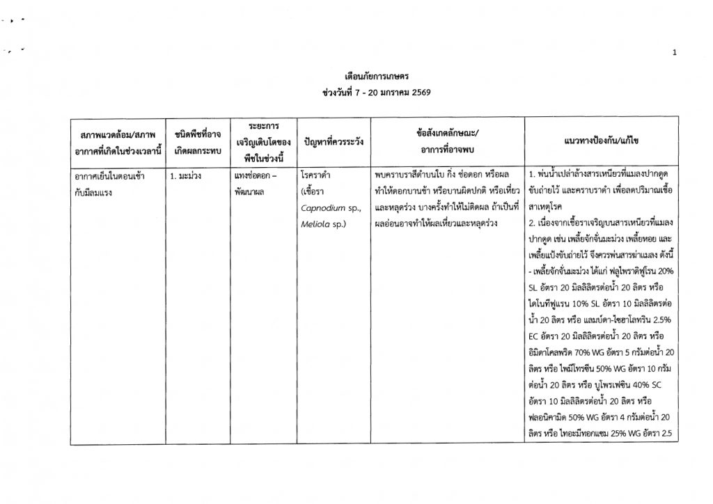 เตือนภัยการเกษตร “เตือนภัยการเกษตร” ช่วงวันที่ 24 ธันวาคม 2568 – 6 มกราคม 256924 ธันวาคม 202524 ธันวาคม 2025