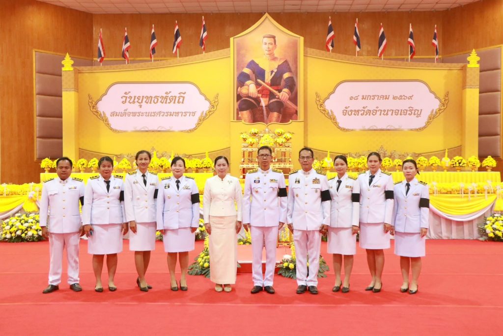 วันอาทิตย์ ที่ 18 มกราคม 2569 นางรตินุช อุตรพงศ์ นักวิชาการเกษตรปฏิบัตการ พร้อมด้วยเจ้าหน้าที่ฯ ร่วมพิธีวางพุ่มดอกไม้และถวายราชสักการะ เนื่องใน งานรัฐพิธีวันสมเด็จพระนเรศวรมหาราช (วันยุทธหัตถี) ประจำปี พ.ศ. 2569 โดยมีนายเสนีย์ ส้มเขียวหวาน ผู้ว่าราชการจังหวัดอำนาจเจริญ เป็นประธาน โดยมีส่วนราชการต่างๆ ในจังหวัดอำนาจเจริญ พร้อมใจกันเข้าร่วมรัฐพิธีฯ ณ หอประชุมพญานาครินทร์ ศาลากลางจังหวัดอำนาจเจริญ จังหวัดอำนาจเจริญ เพื่อน้อมรำลึกถึงพระมหากรุณาธิคุณของสมเด็จพระนเรศวรมหาราช ที่ทรงเป็นพระมหากษัตริย์พระองค์แรกที่กอบกู้เอกราชให้ชาติไทย โดยเฉพาะวีรกรรมที่ทรงเป็นที่จดจำของปวงชนชาวไทย ที่ทรงกระทำยุทธหัตถีกับพระมหาอุปราชาแห่งพม่า จนเป็นที่เลื่องลือมาจนถึงปัจจุบันนี้