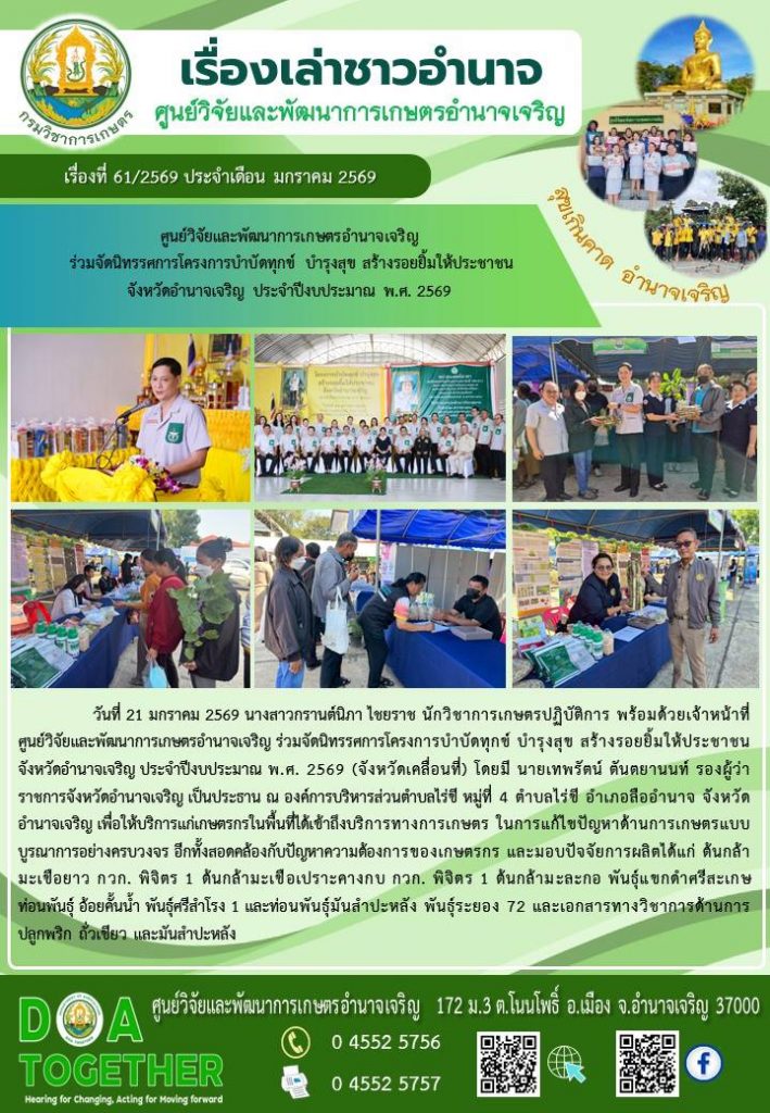 เข้าร่วมกิจกรรมโครงการบำบัดทุกข์ บำรุงสุข สร้างรอยยิ้มให้ประชาชนจังหวัดอำนาจเจริญ ประจำปีงบประมาณ พ.ศ. 2569