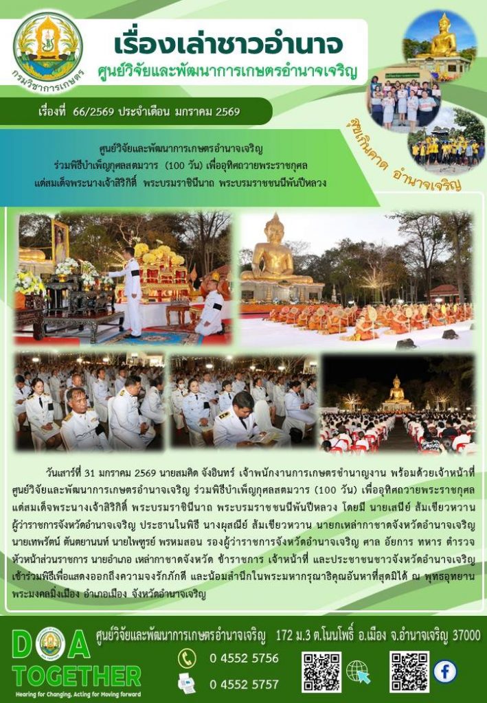 จดหมายข่าวประชาสัมพันธ์ เข้าร่วมกิจกรรมโครงการบำบัดทุกข์ บำรุงสุข สร้างรอยยิ้มให้ประชาชนจังหวัดอำนาจเจริญ ประจำปีงบประมาณ พ.ศ. 256919 กุมภาพันธ์ 202619 กุมภาพันธ์ 2026