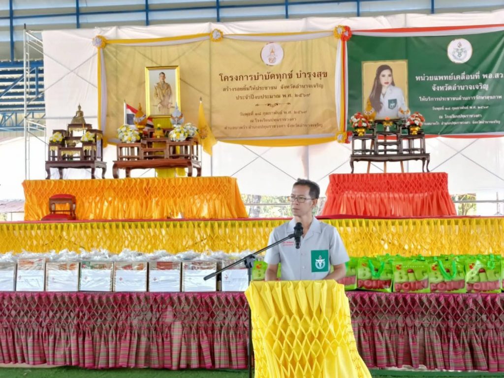 วันพุธที่ 18 กุมภาพันธ์ 2569 นายสมคิด จังอินทร์ เจ้าพนักงานการเกษตรชำนาญงาน พร้อมด้วยเจ้าหน้าที่ศูนย์วิจัยและพัฒนาการเกษตรอำนาจเจริญ เข้าร่วมกิจกรรมโครงการบำบัดทุกข์ บำรุงสุข สร้างรอยยิ้มให้ประชาชน จังหวัดอำนาจเจริญ ประจำปีงบประมาณ พ.ศ. 2569 ประจำเดือนกุมภาพันธ์ 2569 โดยมีนายเสนีย์ ส้มเขียวหวาน ผู้ว่าราชการจังหวัดอำนาจเจริญ เป็นประธานในพิธีฯ ศวพ.อำนาจเจริญ ได้ให้บริการแก่เกษตรกรในพื้นที่ได้เข้าถึง บริการทางการเกษตร ในการแก้ไขปัญหาด้านการเกษตรแบบบูรณาการอย่างครบวงจร อีกทั้งสอดคล้องกับปัญหาความต้องการของเกษตรกร และมอบปัจจัยการผลิตได้แก่ ต้นกล้ามะเขือยาว กวก. พิจิตร 1 ต้นกล้ามะเขือเปราะคางกบ กวก. พิจิตร 1 ต้นกล้ามะละกอ พันธุ์แขกดำศรีสะเกษ และเอกสารทางวิชาการด้านการปลูกพริก ถั่วเขียว และมันสำปะหลัง ณ โรงเรียนปทุมราชวงศา อำเภอปทุมราชวงศา จังหวัดอำนาจเจริญ