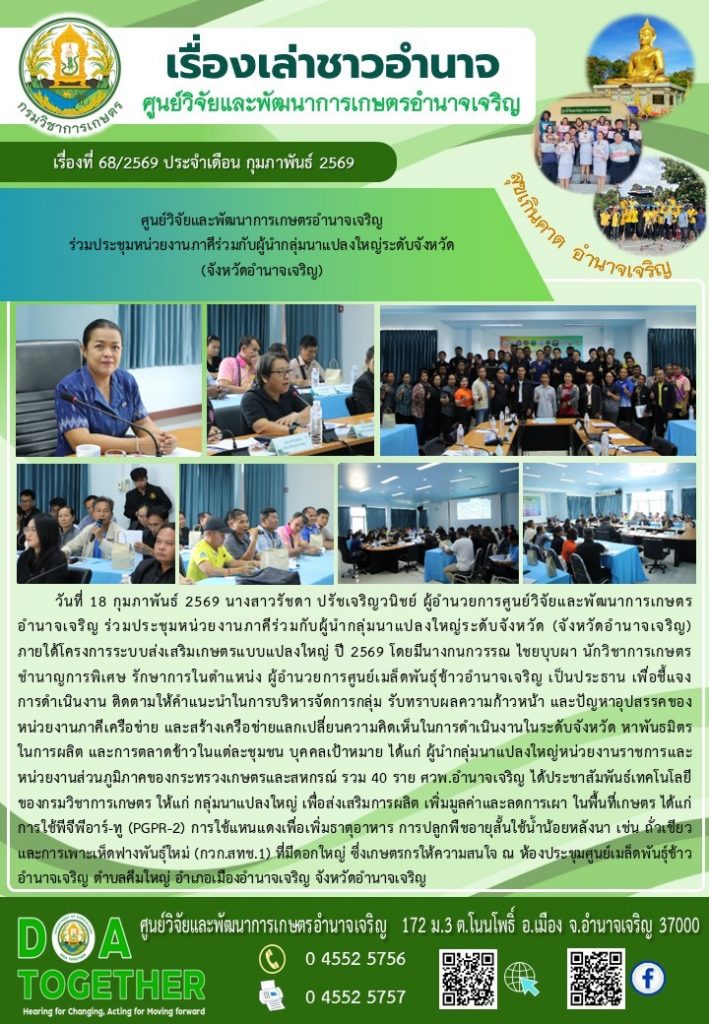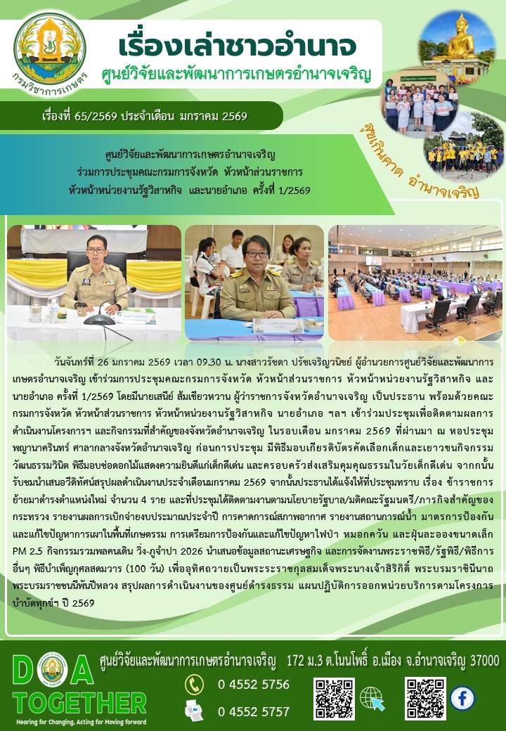 จดหมายข่าวประชาสัมพันธ์ เข้าร่วมกิจกรรมโครงการบำบัดทุกข์ บำรุงสุข สร้างรอยยิ้มให้ประชาชนจังหวัดอำนาจเจริญ ประจำปีงบประมาณ พ.ศ. 256919 กุมภาพันธ์ 202619 กุมภาพันธ์ 2026