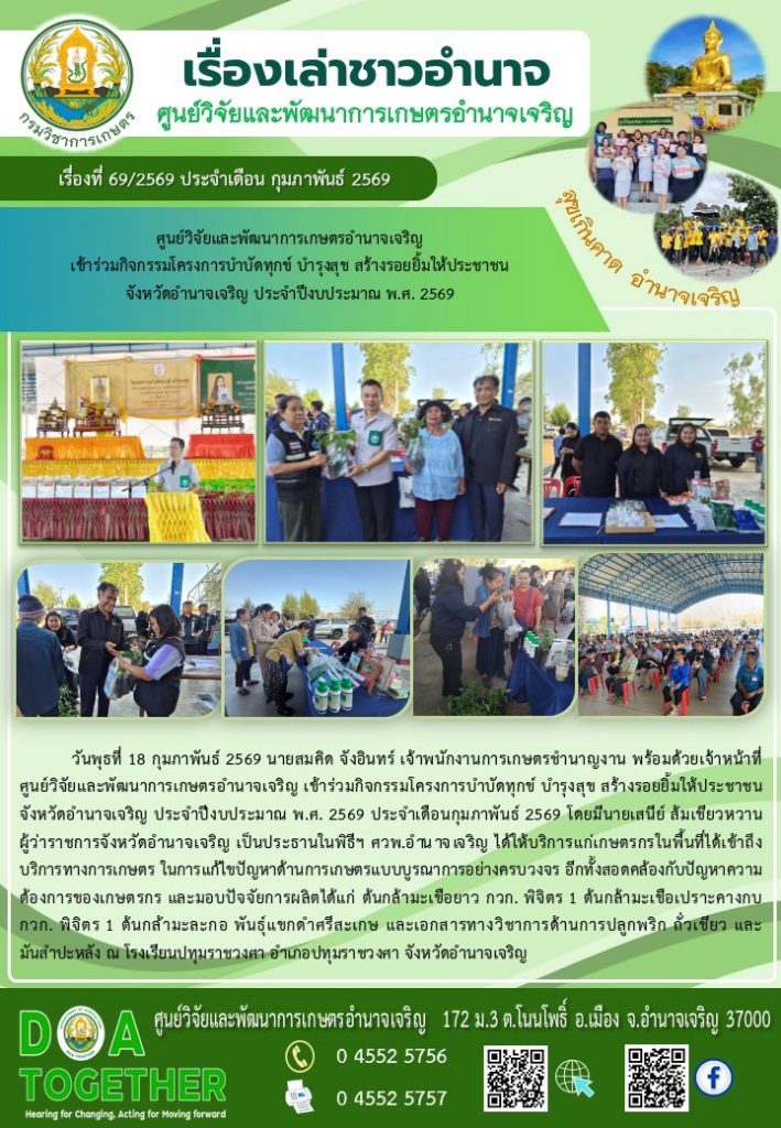 จดหมายข่าวประชาสัมพันธ์ ร่วมประชุมหน่วยงานภาคีร่วมกับผู้นำกลุ่มนาแปลงใหญ่ระดับจังหวัด (จังหวัดอำนาจเจริญ)19 กุมภาพันธ์ 202619 กุมภาพันธ์ 2026