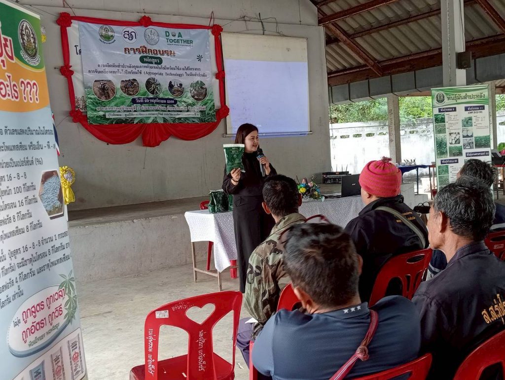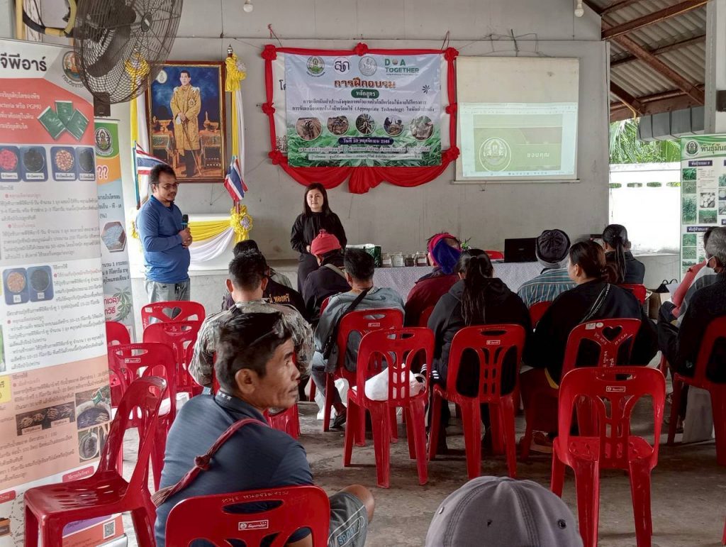 วันที่ 20 พฤศจิกายน 2568 นางรัตน์ติยา พวงแก้ว ผู้อำนวยการศูนย์วิจัยและพัฒนาการเกษตรบุรีรัมย์ มอบหมายให้นางสาวศิริพร ดอกไม้ นักวิชาการเกษตรปฎิบัติการ พร้อมด้วยเจ้าหน้าที่กลุ่มวิจัยและพัฒนาศวพ.บุรีรัมย์ จัดฝึกอบรมเกษตรกรโครงการขับเคลื่อนเทคโนโลยีพร้อมใช้ (Appropriate Technology) ในมันสำปะหลัง ประจำปีงบประมาณ 2568 หลักสูตร “การผลิตมันสำปะหลังคุณภาพด้วยเทคโนโลยีพร้อมใช้” มีวัตถุประสงค์เพื่อถ่ายทอดเทคโนโลยีการผลิตมันสำปะหลังด้วยเทคโนโลยีพร้อมใช้สู่เกษตรกร จำนวน 100 ราย ได้บรรยายให้ความรู้เรื่องเทคโนโลยีการผลิตมันสำปะหลัง การผลิตท่อนพันธุ์มันสำปะหลังสะอาด และมีคุณภาพ มันสำปะหลังกับการเลือกใช้พันธุ์ โดยมีเจ้าหน้าที่จากสำนักงานเกษตรอำเภอบ้านกรวด ร่วมสังเกตการณ์การฝึกอบรม ฯ ครั้งนี้ ณ ศาลากลางหมู่บ้าน หมู่ที่ 2 ต.หนองไม้งาม อ.บ้านกรวด จ.บุรีรัมย์