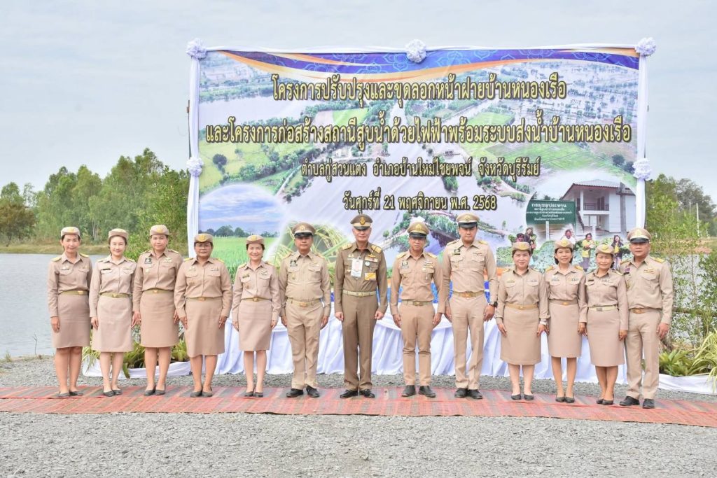 วันที่ 21 พฤศจิกายน 2568 พลอากาศเอก จอม รุ่งสว่าง องคมนตรี พร้อมด้วยคณะอนุกรรมการติดตามและขับเคลื่อนโครงการอันเนื่องมาจากพระราชดำริ ในพื้นที่ภาคตะวันออกเฉียงเหนือ เดินทางลงพื้นที่ติดตามการดำเนินโครงการปรับปรุงและขุดลอกหน้าฝายบ้านหนองเรือ และโครงการก่อสร้างสถานีสูบน้ำด้วยไฟฟ้าพร้อมระบบส่งน้ำบ้านหนองเรือ ต.กู่สวนแตง อ.บ้านใหม่ไชยพจน์ จ.บุรีรัมย์ โดยมีนายศรีธรรม ราชแก้ว รองผู้ว่าราชการจังหวัดบุรีรัมย์ ส่วนราชการสังกัดกระทรวงเกษตรและสกรณ์จังหวัดบุรีรัมย์ และส่วนราชการที่เกี่ยวข้องร่วมรายงานผลการดำเนินกิจกรรมและประโยชน์ที่ราษฎรได้รับจากการดำเนินโครงการดังกล่าว พร้อมนี้ องคมนตรี ได้มอบพันธุ์ข้าวพระราชทานให้แก่ผู้แทนเกษตรกร เยี่ยมชมสภาพพื้นที่โครงการฯ พร้อมพบปะราษฎรผู้ได้รับประโยชน์ และเยี่ยมชมผลิตภัณฑ์และผลผลิตการเกษตรของราษฎรในพื้นที่