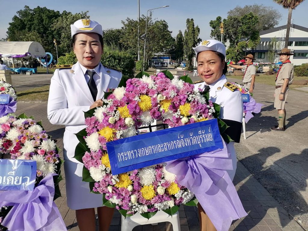 วันที่ 25 พฤศจิกายน 2568 เวลา 09.00 น. นางรัตน์ติยา พวงแก้ว ผู้อำนวยการศูนย์วิจัยและพัฒนาการเกษตรบุรีรัมย์ มอบหมายให้นายศักดินันท์ จันทคณานุรักษ์ นักวิชาการเกษตรปฏิบัติการ พร้อมด้วยเจ้าหน้าที่งานบริหาร ศวพ.บุรีรัมย์ ร่วมพิธีวางพวงมาลาถวายราชสักการะ พระบาทสมเด็จพระมงกุฎเกล้าเจ้าอยู่หัว ณ บริเวณพระบรมราชานุสาวรีย์พระบาทสมเด็จพระมงกุฎเกล้าเจ้าอยู่หัว(รัชกาลที่6) ศาลากลางจังหวัดบุรีรัมย์(หลังเดิม) อ.เมือง จ.บุรีรัมย์ โดยศูนย์วิจัยและพัฒนาการเกษตรบุรีรัมย์ เป็นผู้นำในการขึ้นวางพวงมาลา ในนามหน่วยงานสังกัดกระทรวงเกษตรและสหกรณ์จังหวัดบุรีรัมย์