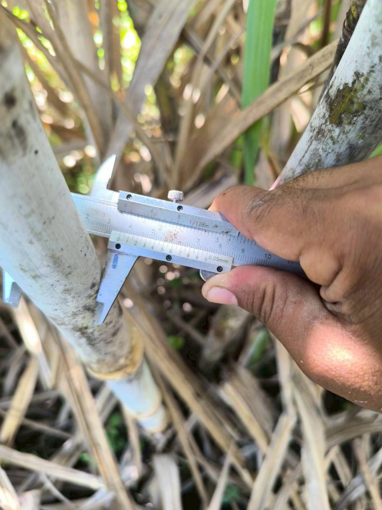 วันที่ 3 ธันวาคม 2568 นางรัตน์ติยา พวงแก้ว ผู้อำนวยการศูนย์วิจัยและพัฒนาการเกษตรบุรีรัมย์ มอบหมายให้นางสาวศิริพร ดอกไม้ นักวิชาการเกษตรปฎิบัติการ ลงพื้นที่ติดตามแปลงทดสอบโคลนอ้อยพลังงานแก๊สชีวภาพและเอทานอล โดยเข้าเก็บข้อมูลรอบ 10 เดือน ครั้งที่ 1 ได้แก่ วัดความสูง ขนาดลำต้น ความหวาน โรคและแมลง ณ แปลงเกษตรกร ต.พรสำราญ อ.คูเมือง จ.บุรีรัมย์