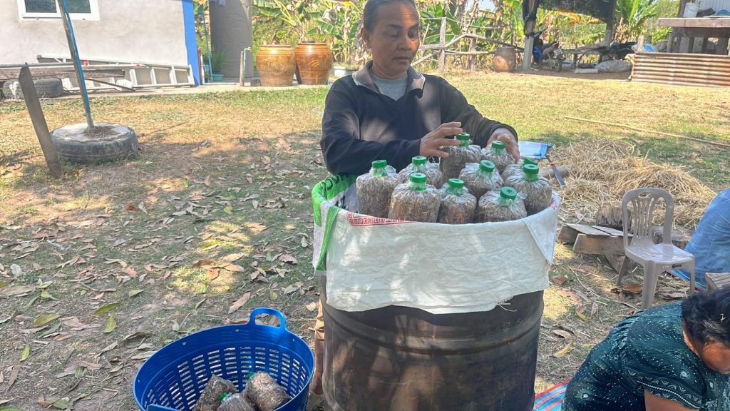 วันที่ 16-17 กุมภาพันธ์ 2569 นางรัตน์ติยา พวงแก้ว ผู้อำนวยการศูนย์วิจัยและพัฒนาการเกษตรบุรีรัมย์ มอบหมายให้เจ้าหน้าที่ศวพ.บุรีรัมย์ เข้าสาธิตการเพาะเห็ดให้แก่เกษตรกรขยายผลการเพาะเห็ดนางฟ้าโดยใช้ฟางข้าวได้เเก่ การผสมอาหารเสริม การบรรจุถุง การอัดก้อน การใส่คอจุกและะการนึ่งฆ่าเชื้อก้อนอาหารเห็ด ณ แปลงเกษตรกร ต.ลำดวน อ.กระสัง จ.บุรีรัมย์