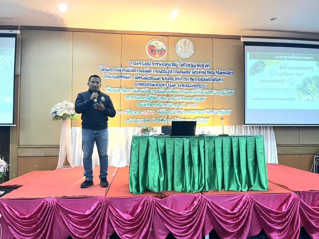 วันที่ 2-5 มีนาคม 2569 นางรัตน์ติยา พวงแก้ว ผู้อำนวยการศูนย์วิจัยและพัฒนาการเกษตรบุรีรัมย์ มอบหมายให้เจ้าหน้าที่งานตรวจรับรองศวพ.บุรีรัมย์ ลงพื้นที่ออกตรวจให้คำแนะนำแปลงใหม่เห็ด GAP พืช ณ แปลงเกษตรกร อ.เมือง จ.บุรีรัมย์ และลงพื้นที่ออกตรวจประเมินแปลงเกษตรกรส่งออกพืชผักไปสหภาพยุโรป (ชนิดพืชพริก) ณ แปลงเกษตรกร อ.หนองหงส์ จ.บุรีรัมย์ และร่วมกับสำนักงานเกษตรจังหวัดบุรีรัมย์ เป็นวิทยากรให้ความรู้ เจ้าหน้าที่ของหน่วยงาน ในหัวข้อ การผลิตสินค้าเกษตรตามมาตรฐานเกษตรอินทรีย์ และมาตรฐาน GAP พืช ณ โรงแรมเดอศิตา ปริ้นเซส อ.เมือง จ.บุรีรัมย์