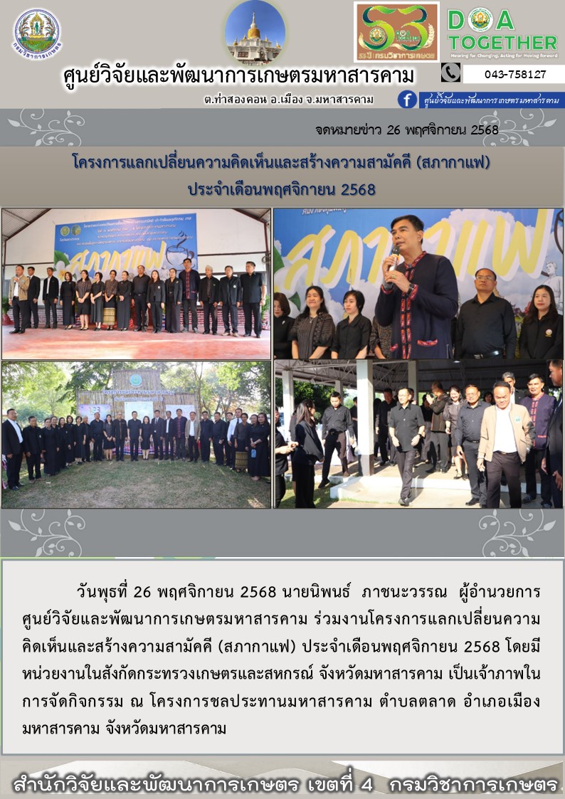 ร่วมเป็นเกียรติในการคัดเลือกกลุ่มเกษตรกรดีเด่นแห่งชาติ (กลุ่มเกษตรกรเลี้ยงสัตว์)ณ กลุ่มวิสาหกิจชุมชนแปลงใหญ่โคนมโคกก่อ ตำบลโคกก่อ อำเภอเมืองมหาสารคาม จังหวัดมหาสารคาม