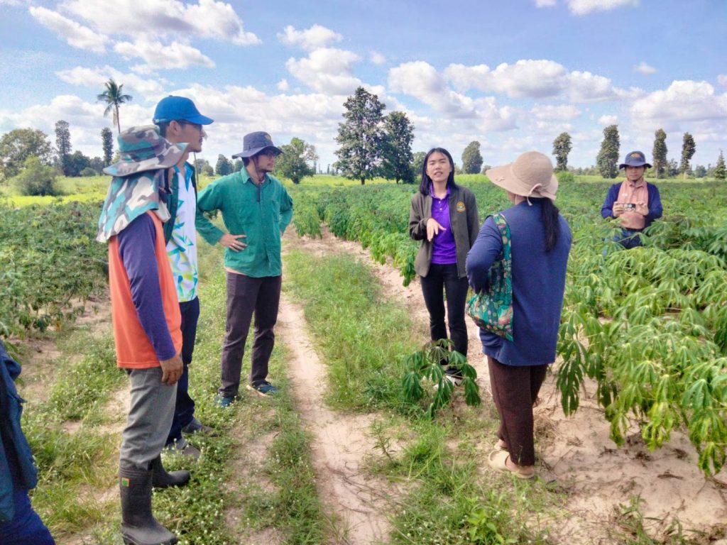 วันที่ 9 ตุลาคม 2568 นายนิพนธ์ ภาชนะวรรณ ผู้อำนวยการศูนย์วิจัยและพัฒนาการเกษตรมหาสารคาม มอบหมายให้ นางสาวจุฑามาศ เครื่องพาที นักวิชาการเกษตรปฏิบัติการ พร้อมเจ้าหน้าที่สถาบันวิจัยพืชไร่และพืชทดแทนพลังงาน กรมวิชาการเกษตร และเจ้าหน้าที่สำนักงานเกษตรอำเภอกุดรัง ลงพื้นที่เพื่อติดตามงานโครงการขับเคลื่อนเทคโนโลยีพร้อมใช้ในมันสำปะหลัง ณ แปลงเกษตรกร ตำบลบัวค้อ อำเภอเมือง และแปลงเกษตรกร ตำบลเลิงแฝก อำเภอกุดรัง จังหวัดมหาสารคาม