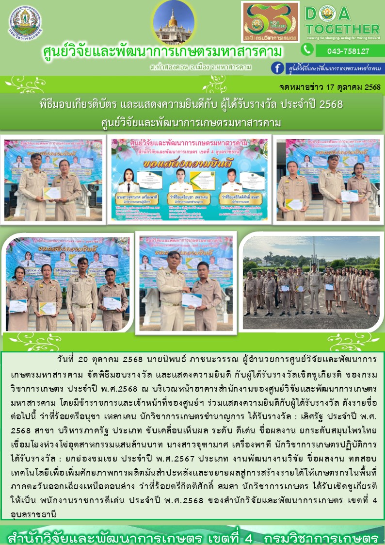 ศูนย์วิจัยและพัฒนาการเกษตรมหาสารคาม
