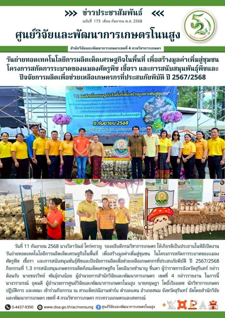 ข่าวกิจกรรม โครงการสกัดการระบาดของแมลงศัตรูพืช เชื้อรา และการสนับสนุนพันธุ์พืชและปัจจัยการผลิตเพื่อช่วยเหลือเกษตรกรที่ประสบภัยพิบัติ ปี 2567/256811 กันยายน 256815 กันยายน 2025