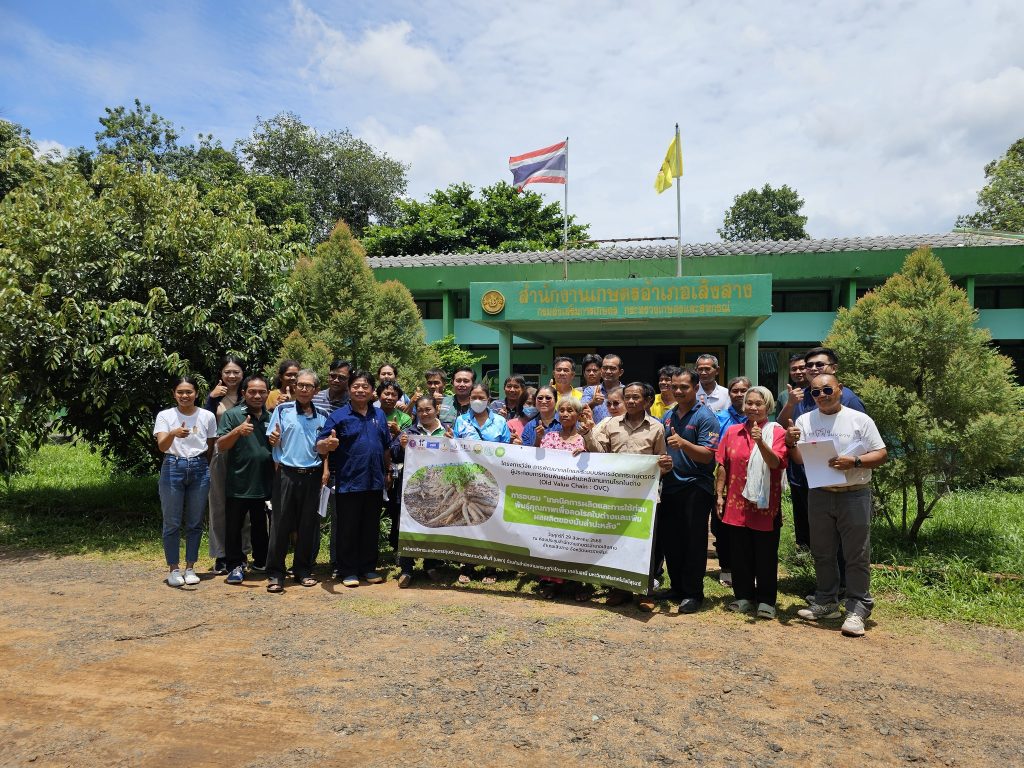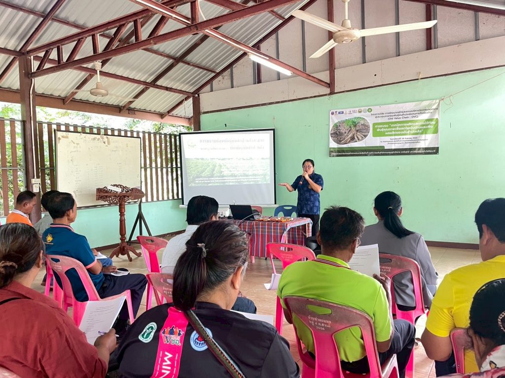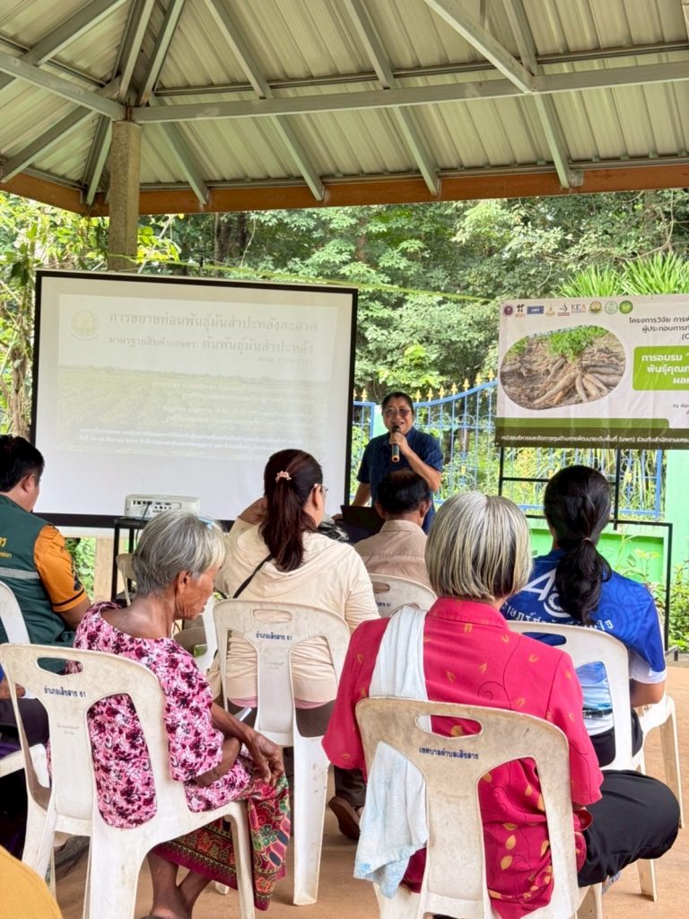 วันที่ 28 – 29 สิงหาคม 2568 นางสาววิภาดา ปลอดครบุรี นักวิชาการเกษตรชำนาญการ ได้รับมอบหมายจากนางวราภรณ์ อุดมดี ผู้อำนวยการศูนย์วิจัยและพัฒนาการเกษตรโนนสูง เป็นวิทยากรถ่ายทอดความรู้การขยายท่อนพันธุ์มันสำปะหลังสะอาด ตามมาตรฐานสินค้าเกษตร: ต้นพันธุ์มันสำปะหลัง มกษ. 5704-2561 แก่เกษตรกรผู้ผลิตท่อนพันธุ์จำหน่ายในพื้นที่ และผู้ที่สนใจการผลิตท่อนพันธุ์มันสำปะหลังสะอาด ของโครงการวิจัย “การพัฒนากลไกและระบบบริหารจัดการเกษตรกรผู้ประกอบการท่อนพันธุ์มันสำปะหลังทนทานโรคใบด่าง (Old Value Chain: OVC)” สำนักงานเศรษฐกิจโคราช เทคโนธานี มหาวิทยาลัยเทคโนโลยีสุรนารี เพื่อเสริมสร้างความรู้ความเข้าใจให้ผู้ร่วมการอบรมสามารถนำไปปรับใช้ในการปฏิบัติจริงในพื้นที่เพาะปลูก ตลอดจนส่งเสริมการใช้ท่อนพันธุ์ที่มีความทนทานต่อโรคใบด่างและเพิ่มผลผลิตมันสำปะหลังอย่างยั่งยืน ณ สำนักงานเกษตรอำเภอหนองบุญมาก และสำนักงานเกษตรอำเภอเสิงสาง จังหวัดนครราชสีมา จำนวนอำเภอละ 25 คน รวมทั้งสิ้น 50 คน