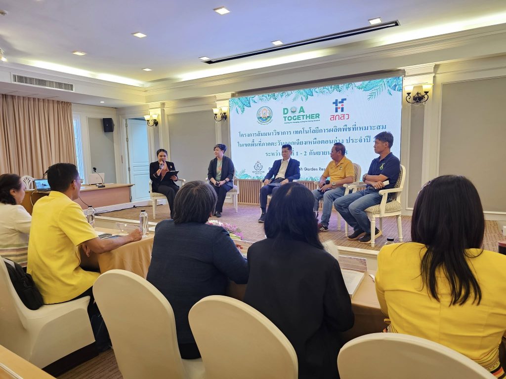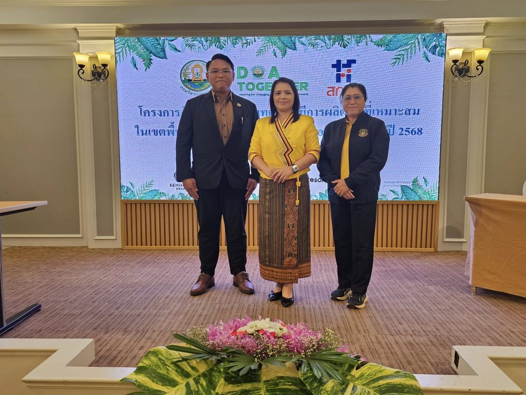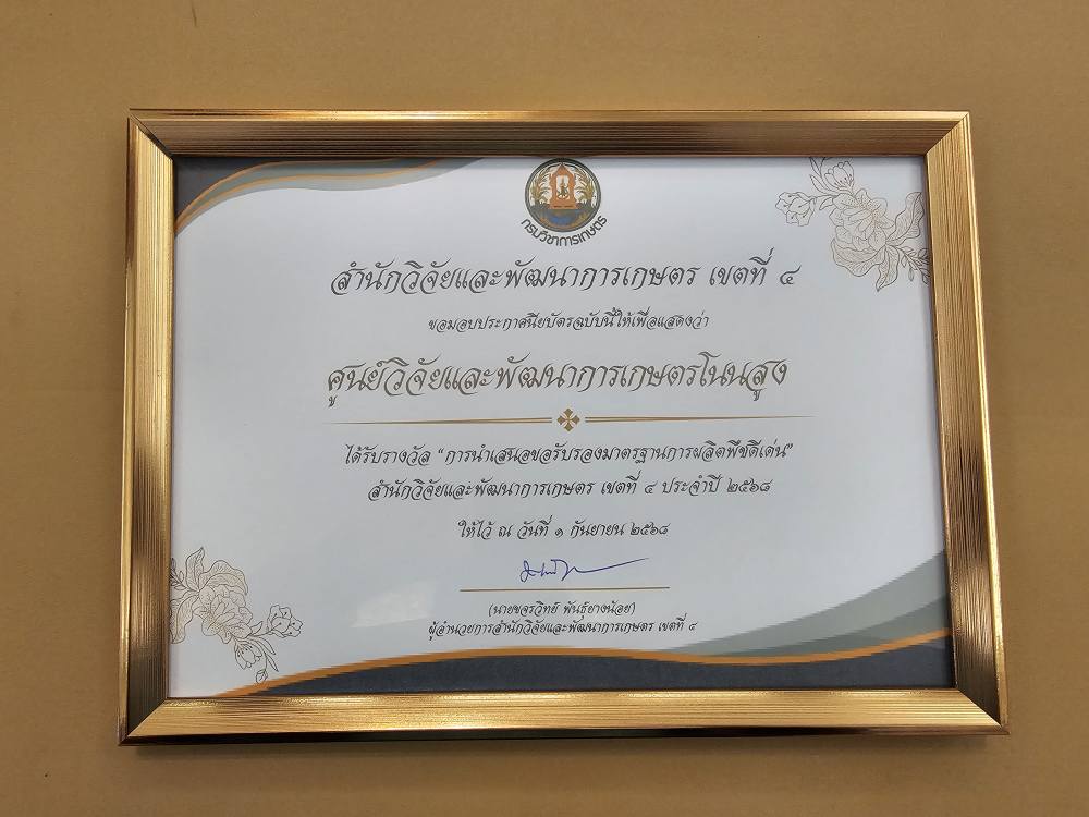 วันที่ 1-2 กันยายน 2568 นางวราภรณ์ อุดมดี ผู้อำนวยการศูนย์วิจัยและพัฒนาการเกษตรโนนสูง พร้อมด้วยข้าราชการ และเจ้าหน้าที่ เข้าร่วมสัมมนาวิชาการ เทคโนโลยีการผลิตพืชที่เหมาะสมในเขตพื้นที่ภาคตะวันออกเฉียงเหนือตอนล่าง ประจำปี 2568 โดยมีนายขจรวิทย์ พันธุ์ยางน้อย ผู้อำนวยการสำนักวิจัยและพัฒนาการเกษตร เขตที่ 4 เป็นประธานการจัดสัมมนาวิชาการ ภายใต้แนวคิด “วิจัยเกษตรก้าวหน้า สร้างมูลค่า พัฒนาอีสานล่าง สู่ความยั่งยืน” โดยมีวัตถุประสงค์เพื่อนำเสนอผลงานวิจัยและบริการเด่นของหน่วยงานประจำปี 2567 และรายงานผลการดำเนินงานประจำปี 2568 ซึ่งภายในงานสัมมนาวิชาการนี้ ศูนย์วิจัยและพัฒนาการเกษตรโนนสูง ได้รับรางวัล “การนำเสนอขอรับรองมาตรฐานการผลิตพืชดีเด่น” สำนักวิจัยและพัฒนาการเกษตร เขตที่ 4 ประจำปี 2568″ และภายในงานยังมีการจัดนิทรรศการ การขยายผลเทคโนโลยีการเพิ่มประสิทธิภาพการผลิตพืชและผลิตภัณฑ์แปรรูปต่างๆ จากงานวิจัย อาทิ วุ้นเส้นจากถั่วเขียวอินทรีย์ น้ำพริกเผา บาล์มพริก สบู่สมุนไพรใบบัวบก ผำอาหารแห่งอนาคต เป็นต้น ซึ่งจัดขึ้น ณ โรงแรมเคนซิงตัน อิงลิช การ์เด้น รีสอร์ท เขาใหญ่ อำเภอปากช่อง จังหวัดนครราชสีมา