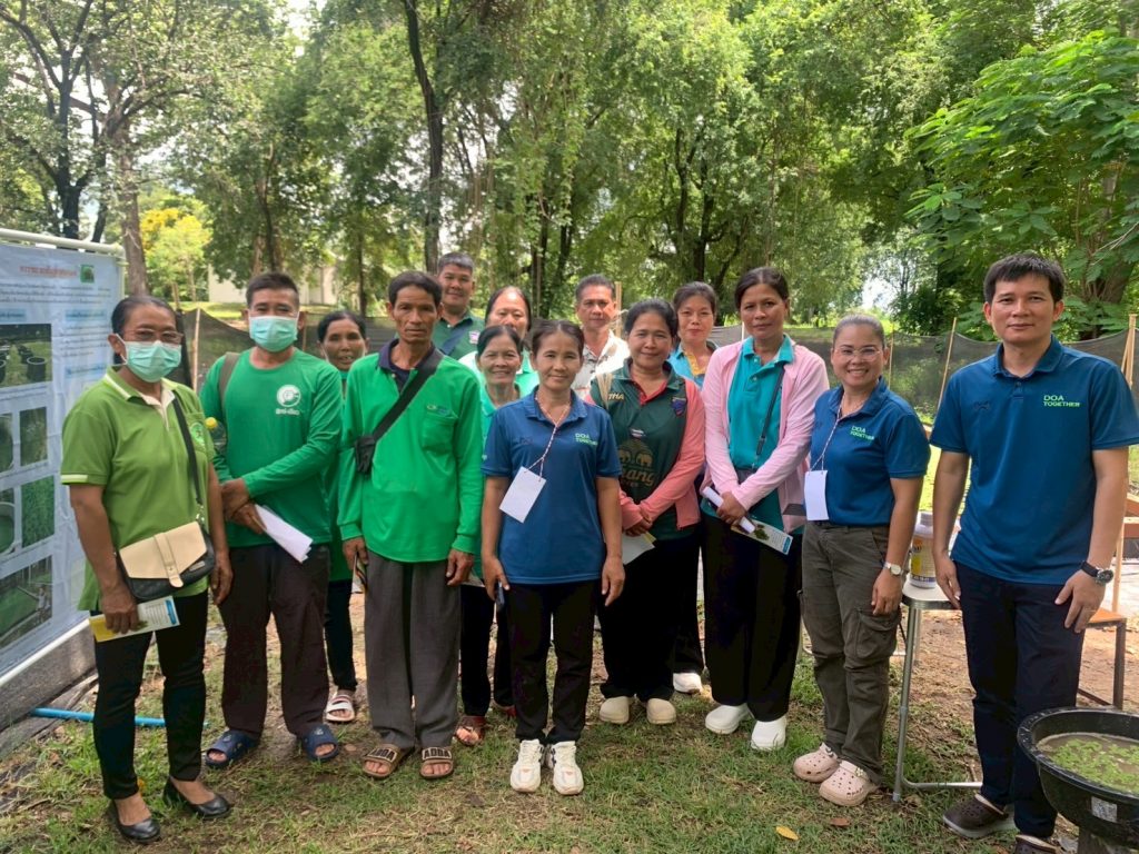 วันที่ 8 กันยายน 2568 นางวราภรณ์ อุดมดี ผู้อำนวยการศูนย์วิจัยและพัฒนาการเกษตรโนนสูง พร้อมด้วยข้าราชการ และเจ้าหน้าที่ ต้อนรับคณะเจ้าหน้าที่องค์การบริหารส่วนตำบลตาจั่น นำโดยนายมานพ รัตนประเสริฐ และนายจำรัส ท่วมนอก รองนายกองค์การบริหารส่วนตำบลตาจั่น พร้อมพนักงานเจ้าหน้าที่ และเกษตรกรในพื้นที่ตำบลตาจั่น อำเภอโนนสูง จังหวัดนครราชสีมา รวมจำนวน 55 ราย ในการนี้บุคลากร ศวพ.โนนสูง ได้ถ่ายทอดความรู้การผลิตปุ๋ยหมักจากวัสดุเหลือใช้ทางการเกษตร การผลิตและการนำแหนแดงไปใช้ประโยชน์ทางการเกษตร ชีวภัณฑ์กรมวิชาการเกษตร และการผลิตเห็ดภูฏาน สทช. กวก1. เพื่อพัฒนาความรู้และแลกเปลี่ยนองค์ความรู้ด้านการเกษตร ณ ศูนย์วิจัยและพัฒนาการเกษตรโนนสูง อำเภอโนนสูง จังหวัดนครราชสีมา