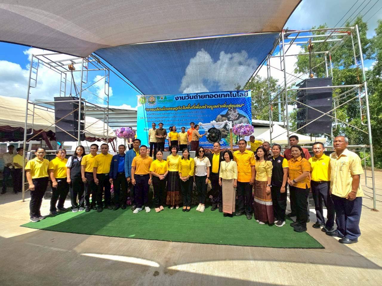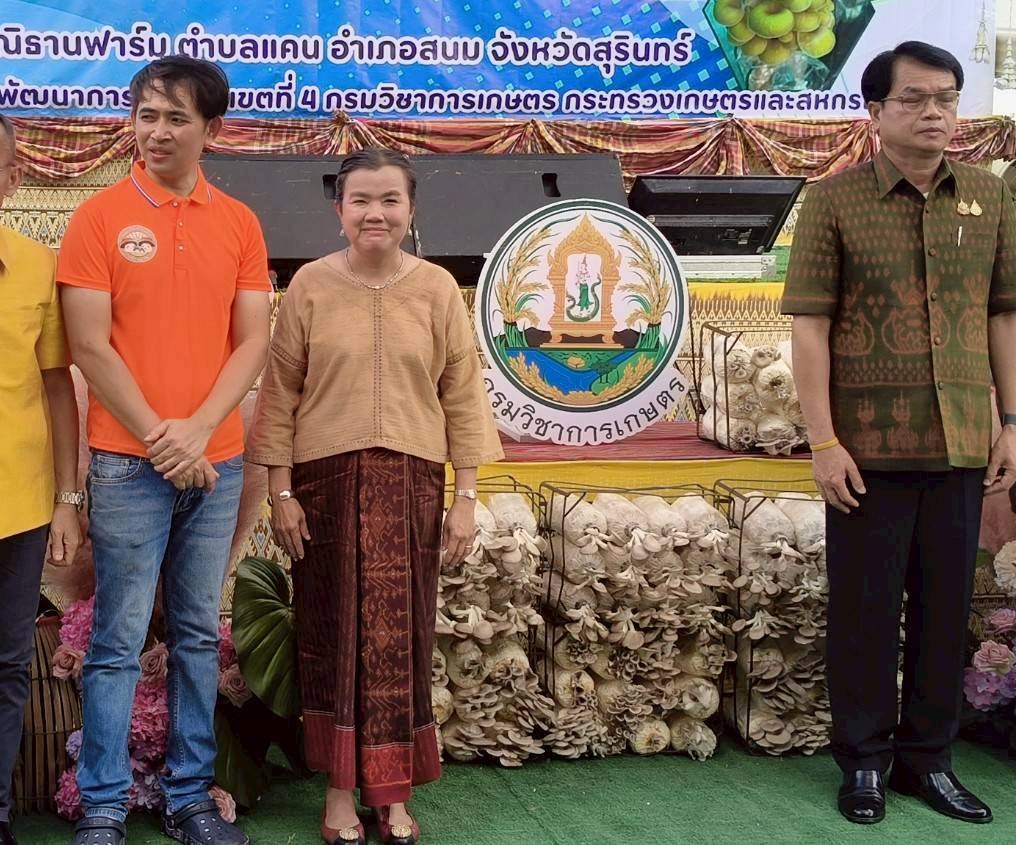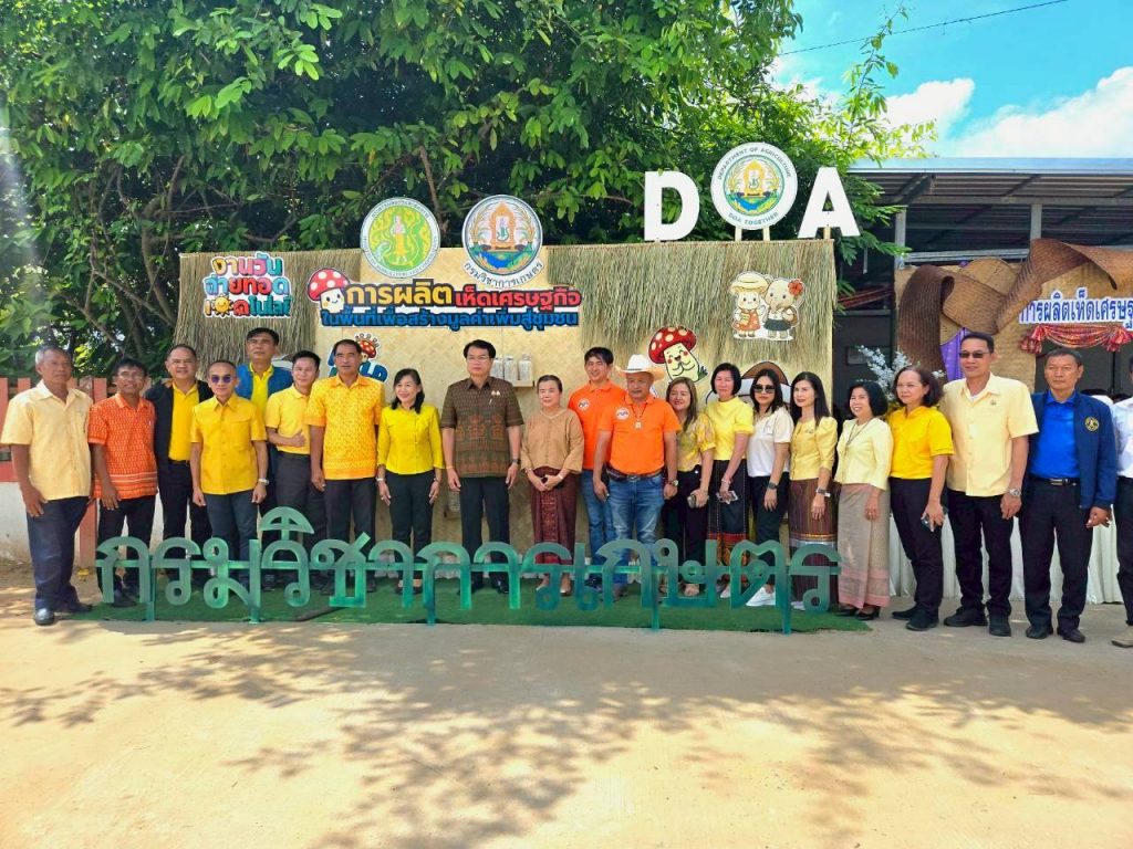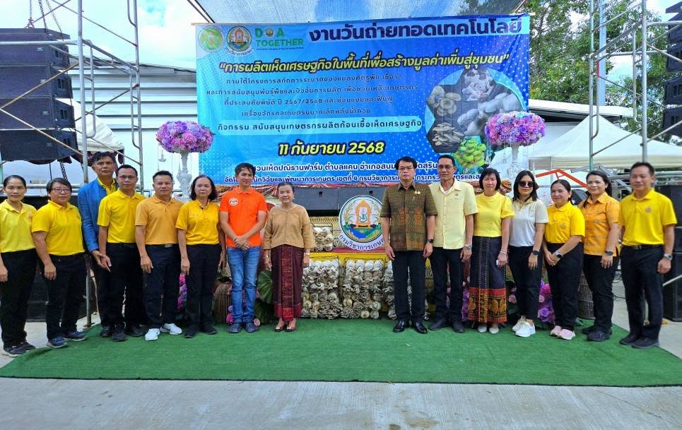 วันที่ 11 กันยายน 2568 นางวิลาวัณย์ ใคร่ครวญ รองอธิบดีกรมวิชาการเกษตร ให้เกียรติเป็นประธานในพิธีเปิดงานวันถ่ายทอดเทคโนโลยีการผลิตเห็ดเศรษฐกิจในพื้นที่ เพื่อสร้างมูลค่าเพิ่มสู่ชุมชน ในโครงการสกัดการระบาดของแมลงศัตรูพืช เชื้อรา และการสนับสนุนพันธุ์พืชและปัจจัยการผลิตเพื่อช่วยเหลือเกษตรกรที่ประสบภัยพิบัติ ปี 2567/2568 กิจกรรมที่ 1.3 การสนับสนุนเกษตรกรผลิตก้อนเห็ดเศรษฐกิจ โดยมีนายชำนาญ ชื่นตา ผู้ว่าราชการจังหวัดสุรินทร์ กล่าวต้อนรับ นายขจรวิทย์ พันธุ์ยางน้อย ผู้อำนวยการสำนักวิจัยและพัฒนาการเกษตร เขตที่ 4 กล่าวรายงาน ในการนี้นางวราภรณ์ อุดมดี ผู้อำนวยการศูนย์วิจัยและพัฒนาการเกษตรโนนสูง นายกฤษฎา โพธิ์เรืองเดช นักวิชาการเกษตรปฏิบัติการ และคณะ เข้าร่วมกิจกรรม ณ สวนเห็ดปณิธานฟาร์ม ตำบลแคน อำเภอสนม จังหวัดสุรินทร์