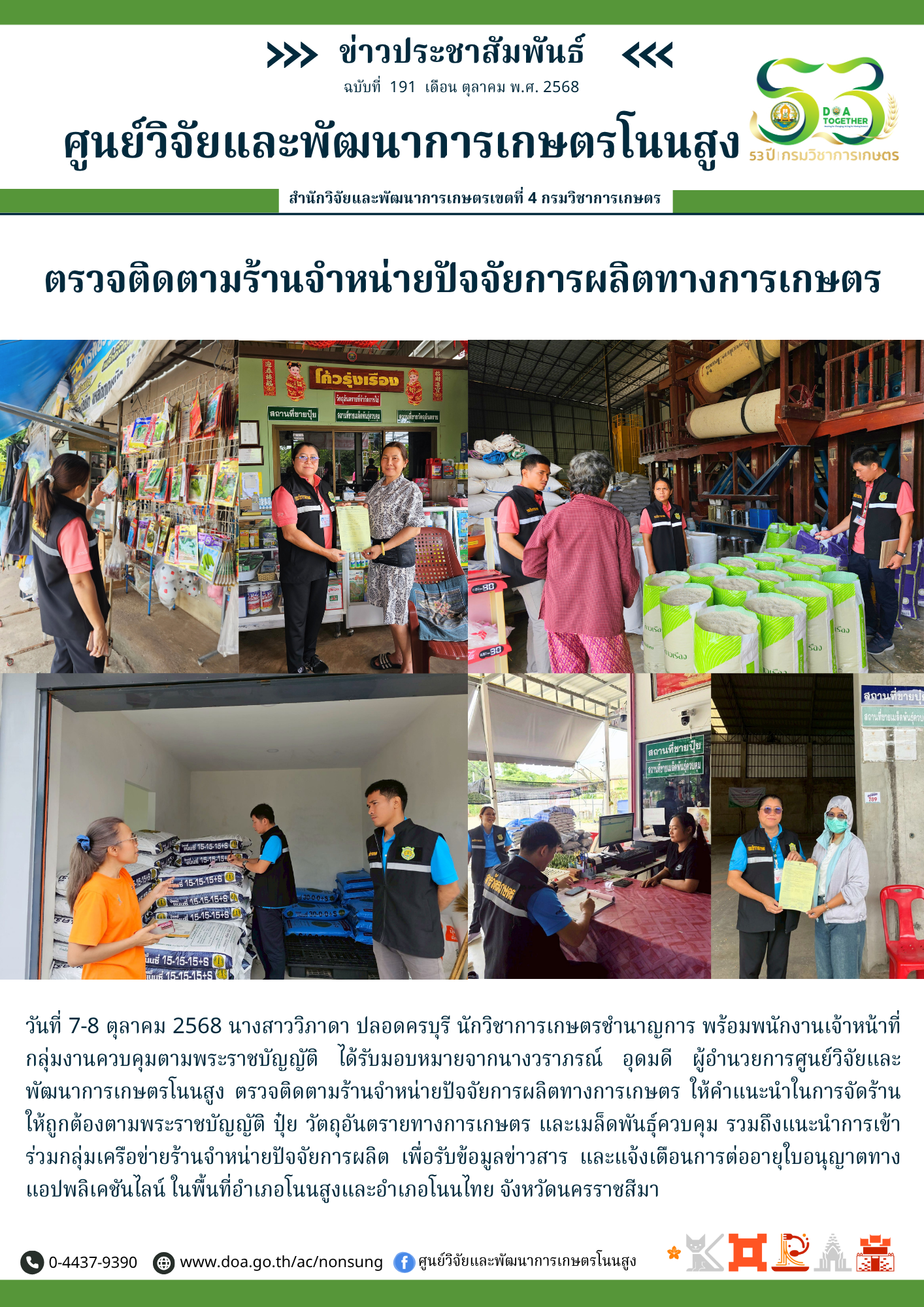 จดหมายข่าวฉบับที่ 191 ประจำเดือน ตุลาคม 2568
