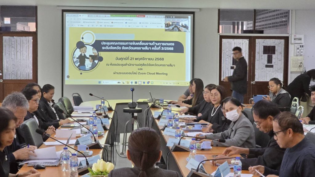 เมื่อวันที่ 21 พฤศจิกายน 2568 นางวราภรณ์ อุดมดี ผู้อำนวยการศูนย์วิจัยและพัฒนาการเกษตรโนนสูง เข้าร่วมการประชุมคณะกรรมการขับเคลื่อนงานด้านเกษตรระดับจังหวัด จังหวัดนครราชสีมา ครั้งที่ 3/2568 ผ่านระบบออนไลน์ เพื่อร่วมวางแนวทางและบูรณาการการขับเคลื่อนงานด้านการเกษตรในพื้นที่ให้เกิดประสิทธิภาพสูงสุด