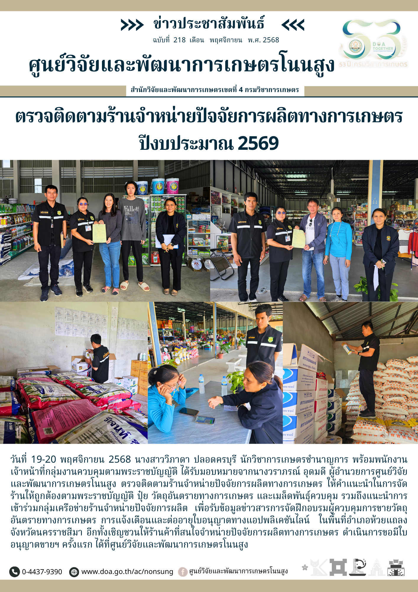 จดหมายข่าวฉบับที่ 218 ประจำเดือน พฤศจิกายน 2568