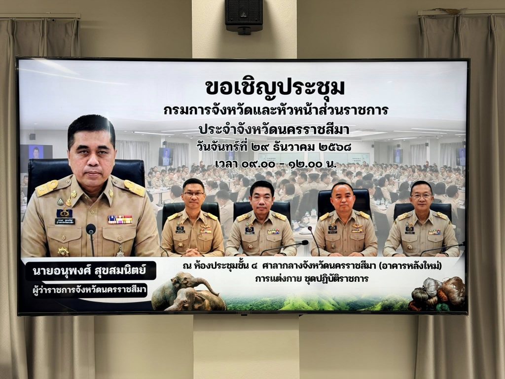วันที่ 29 ธันวาคม 2568 นางวรภรณ์ อุดมดี ผู้อำนวยการศูนย์วิจัยและพัฒนาการเกษตรโนนสูง มอบหมายให้นายกฤษฎา โพธิ์เรืองเดช และนางสุมิตรา เภสัชชา นักวิชาการเกษตร เข้าร่วมประชุมกรมการจังหวัดนครราชสีมาและหัวหน้าส่วนราชการประจำจังหวัดนครราชสีมา ครั้งที่ 12/2568 โดยมี นายอนุพงศ์ สุขสมนิตย์ ผู้ว่าราชการจังหวัดนครราชสีมา เป็นประธาน ซึ่งผู้ว่าราชการจังหวัดนครราชสีมาได้เน้นย้ำให้ทุกภาคส่วนบูรณาการความร่วมมืออย่างใกล้ชิด ขับเคลื่อนการป้องกัน ปราบปราม และแก้ไขปัญหายาเสพติดอย่างต่อเนื่องและจริงจัง เพื่อสร้างความปลอดภัยและคุณภาพชีวิตที่ดีให้แก่ประชาชนในพื้นที่จังหวัดนครราชสีมาอย่างยั่งยืน ณ ห้องประชุมชั้น 4 ศาลากลางจังหวัดนครราชสีมา (อาคารหลังใหม่)