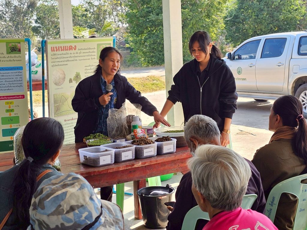 วันที่ 12 – 13 มกราคม 2569 นางสาววิภาดา ปลอดครบุรี นักวิชาการเกษตรชำนาญการ พร้อมคณะเจ้าหน้าที่ ได้รับมอบหมายจาก ผู้อำนวยการศูนย์วิจัยและพัฒนาการเกษตรโนนสูง เป็นวิทยากรถ่ายทอดความรู้ ในหัวข้อ “การผลิตและการใช้ประโยชน์จากแหนแดง” ภายใต้โครงการพัฒนาด้านเกษตร กิจกรรมหลักพัฒนาทรัพยากรดิน เพิ่มความอุดมสมบูรณ์ กิจกรรมย่อย การส่งเสริมการผลิตและการใช้แหนแดงเพื่อลดต้นทุนการผลิต จัดโดยสำนักงานเกษตรจังหวัดนครราชสีมา มีเกษตรกรเข้าร่วมการฝึกอบรมจำนวน 20 รายต่อรุ่น รุ่นที่ 7 ณ ศาลาประชาคมบ้านขามเวียน ตำบลช่อระกา อำเภอบ้านเหลื่อม และรุ่นที่ 8 ณ ศูนย์การเรียนรู้การเพิ่มประสิทธิภาพการผลิตสินค้าเกษตร (ศพก.) ตำบลหลุ่งประดู่ อำเภอห้วยแถลง จังหวัดนครราชสีมา