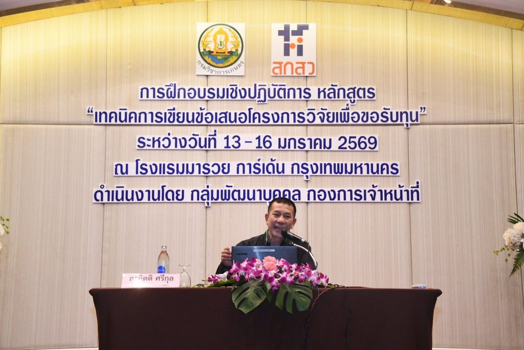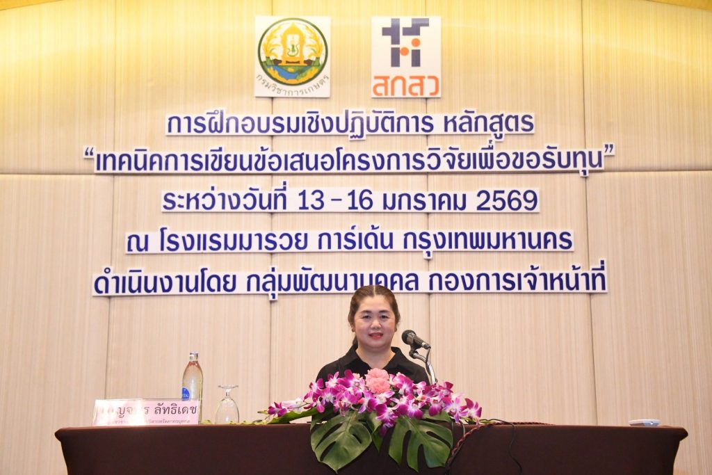 นายรพีภัทร์ จันทรศรีวงศ์ อธิบดีกรมวิชาการเกษตร มอบหมายให้นางสาวเบญจพร ลัทธิเดช ผู้เชี่ยวชาญด้านการบริหารทรัพยากรบุคคล กองการเจ้าหน้าที่ เป็นประธานในพิธีเปิดการฝึกอบรมเชิงปฏิบัติการ หลักสูตร “เทคนิคการเขียนข้อเสนอโครงการวิจัยเพื่อขอรับทุน”