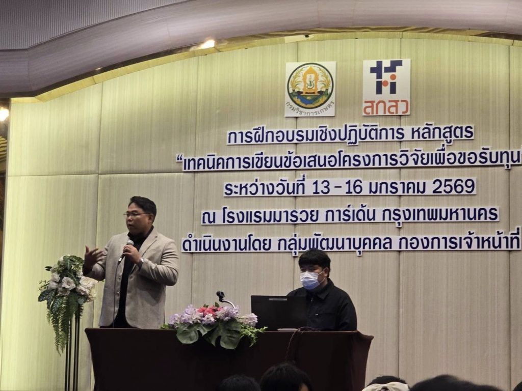 นายกฤษฎา โพธิ์เรือเดช ได้รับมอบหมายจากผู้อำนวยการศูนย์วิจัยและพัฒนาการเกษตรโนนสูง เข้ารับการฝึกอบรมได้พัฒนาทักษะความรู้ และความเข้าใจเกี่ยวกับหลักการ กระบวนการ และองค์ประกอบในการจัดทำข้อเสนอโครงการวิจัยให้มีคุณภาพ
