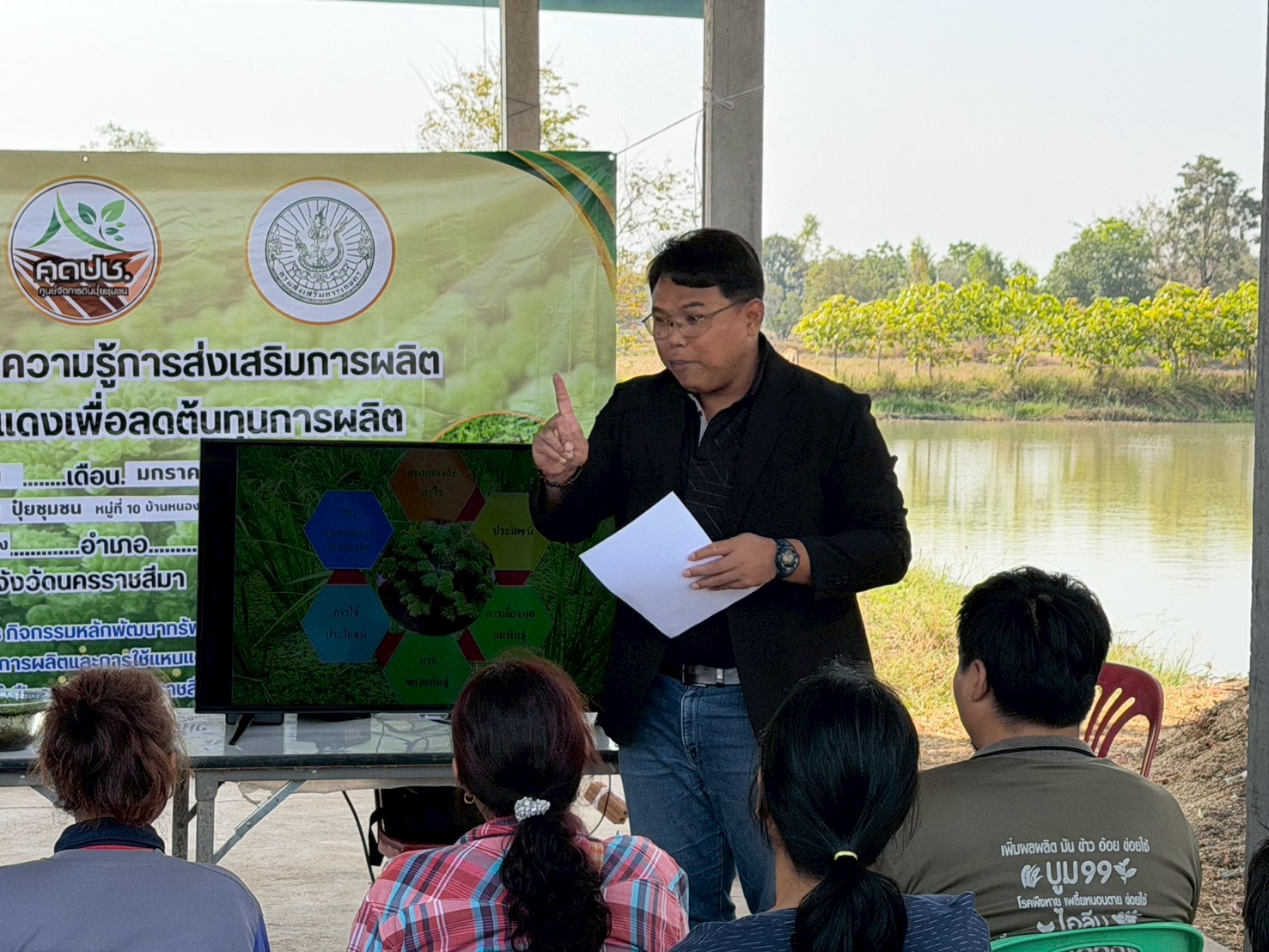 นายกฤษฎา โพธิ์เรืองเดช นักวิชาการเกษตรปฏิบัติการ พร้อมคณะเจ้าหน้าที่ ได้รับมอบหมายจากผู้อำนวยการศูนย์วิจัยและพัฒนาการเกษตรโนนสูง ทำหน้าที่เป็นวิทยากรถ่ายทอดความรู้