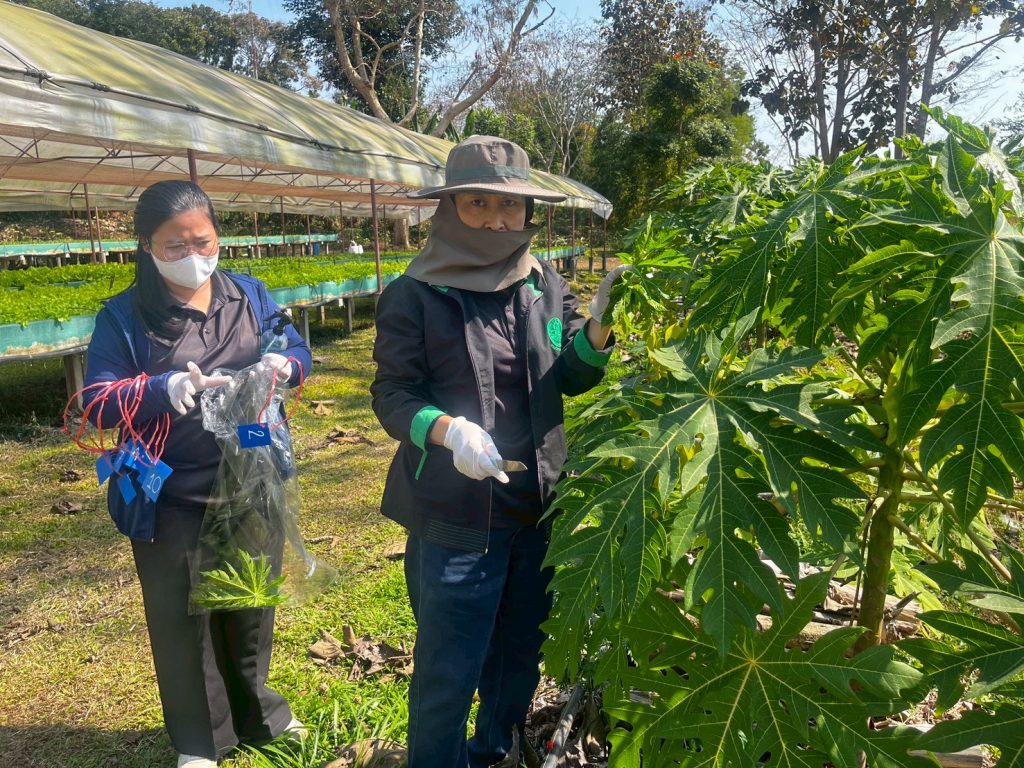 วันที่ 29 มกราคม พ.ศ. 2569 นางสาวจรีรัตน์ ไชยรัตน์ เจ้าพนักงานการเกษตรปฏิบัติงาน พร้อมด้วยเจ้าหน้าที่งานตรวจรับรองแหล่งผลิตตามมาตรฐาน GAP พืช และพืชอินทรีย์ ได้รับมอบหมายจากผู้อำนวยการศูนย์วิจัยและพัฒนาการเกษตรโนนสูง ให้ลงพื้นที่ตรวจประเมินแปลงแหล่งผลิตพืชอินทรีย์ตามมาตรฐาน มกษ. 9000-2564 พร้อมทั้งเก็บตัวอย่าง มะละกอ เพื่อส่งตรวจวิเคราะห์การปนเปื้อนของสิ่งมีชีวิตดัดแปลงพันธุกรรม (GMO)