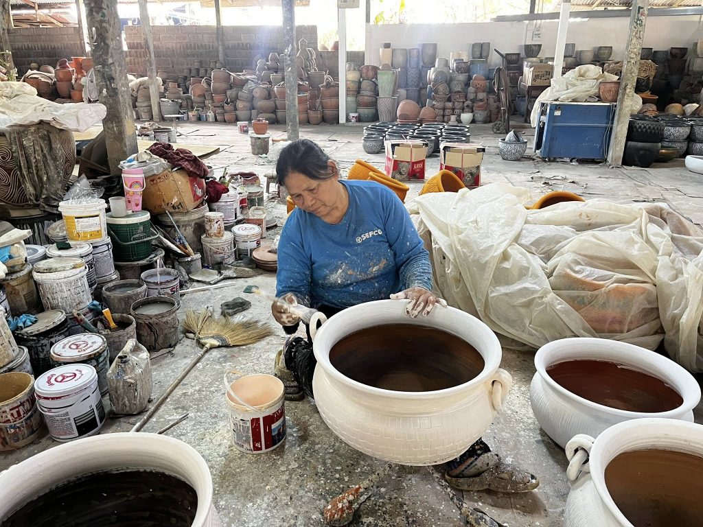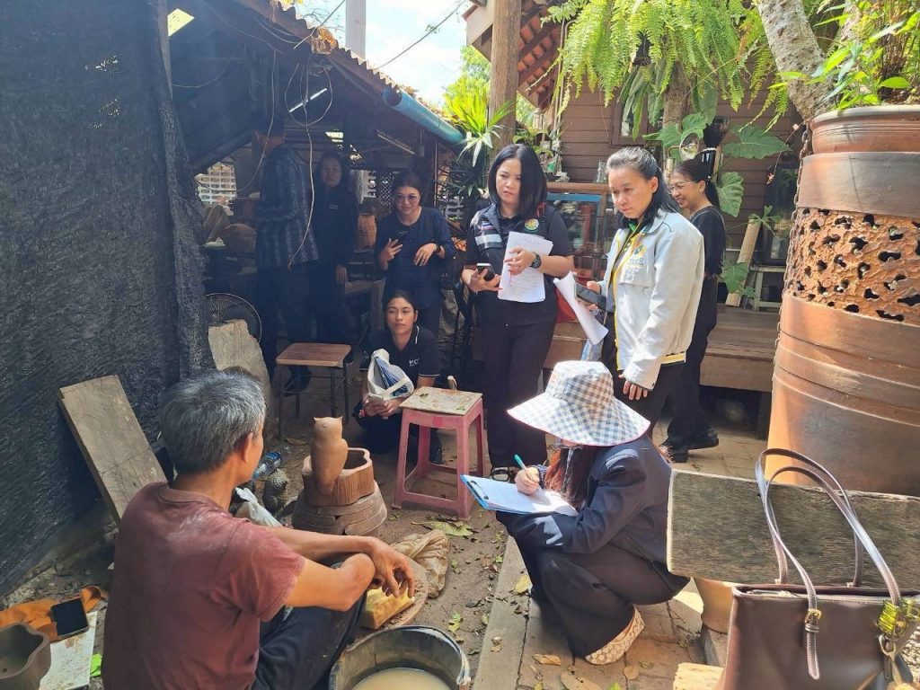 วันที่ 18 กุมภาพันธ์ 2569 นางสาวจรีรัตน์ ไชยรัตน์ เจ้าพนักงานการเกษตรปฏิบัติงาน พร้อมด้วยนางสุมิตรา เภสัชชา นักวิชาการเกษตร ได้รับมอบหมายจากผู้อำนวยการศูนย์วิจัยและพัฒนาการเกษตรโนนสูง ลงพื้นที่ตรวจประเมินการขออนุญาตใช้ตราสัญลักษณ์สิ่งบ่งชี้ทางภูมิศาสตร์ (GI) สินค้า “เครื่องปั้นดินเผาด่านเกวียน” ร่วมกับหน่วยงานราชการที่เกี่ยวข้อง เพื่อพิจารณาการขอใช้ตราสัญลักษณ์ GI ในรูปแบบกลุ่ม ซึ่งประกอบด้วยสมาชิกจำนวน 20 ราย การลงพื้นที่ครั้งนี้ครอบคลุมพื้นที่ตำบลด่านเกวียน ตำบลท่าจะหลุง ตำบลท่าอ่าง และตำบลละลมใหม่ อำเภอด่านเกวียน จังหวัดนครราชสีมา เพื่อตรวจสอบความถูกต้องตามหลักเกณฑ์ มาตรฐาน และเงื่อนไขที่กำหนด อันจะนำไปสู่การยกระดับคุณภาพสินค้า สร้างความเชื่อมั่นให้แก่ผู้บริโภค และส่งเสริมอัตลักษณ์ท้องถิ่นให้เป็นที่ยอมรับอย่างยั่งยืนต่อไป