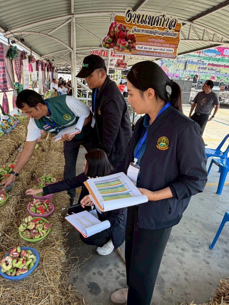 วันที่ 20 กุมภาพันธ์ 2569 นางสาวนลิน นัยติ๊บ นักวิชาการเกษตรปฏิบัติการ ได้รับมอบหมายจากนางวราภรณ์ อุดมดี ผู้อำนวยการศูนย์วิจัยและพัฒนาการเกษตรโนนสูง ร่วมกับสำนักงานเกษตรอำเภอโนนไทย เป็นคณะกรรมการตัดสินการประกวดผลผลิตทางการเกษตร จำนวน 4 ชนิด ได้แก่ มะขามเทศเพชรโนนไทย ฝรั่งพันธุ์กิมจู มะพร้าวน้ำหอม และข้าวหอมมะลิคุณภาพดี (ขาวดอกมะลิ 105) ในงานเทศกาลวันมะขามเทศอำเภอโนนไทย งานของดีอำเภอโนนไทย และงานกาชาดอำเภอโนนไทย ประจำปี 2569 โดยมีนายอนุพงศ์ สุขสมนิตย์ ผู้ว่าราชการจังหวัดนครราชสีมา เป็นประธานในพิธีเปิดงาน จัดขึ้นระหว่างวันที่ 20-22 กุมภาพันธ์ 2569 ณ ลานหน้าที่ว่าการอำเภอโนนไทย จังหวัดนครราชสีมา