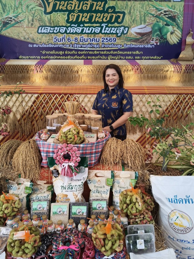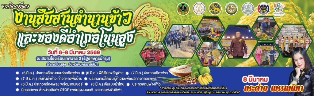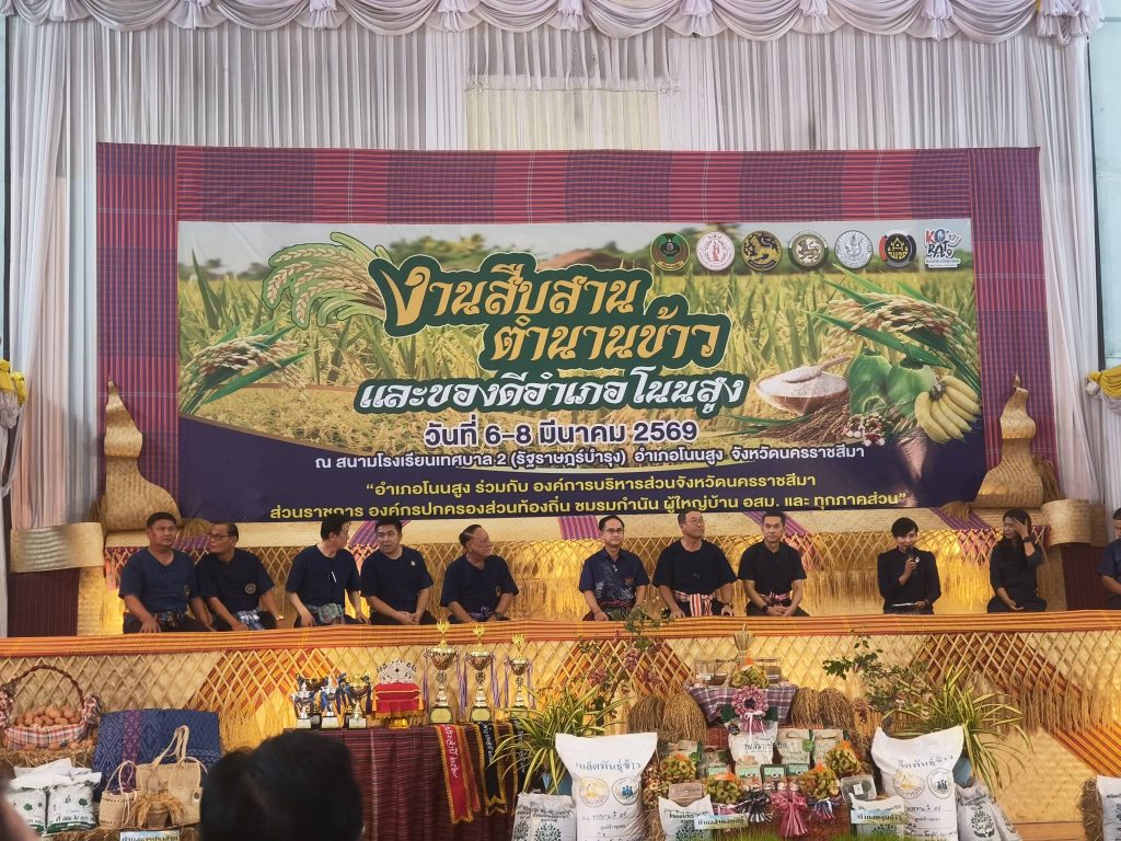 วันที่ 27 กุมภาพันธ์ 2569 นางวราภรณ์ อุดมดี ผู้อำนวยการศูนย์วิจัยและพัฒนาการเกษตรโนนสูง ร่วมงานแถลงข่าวการจัดงาน “สืบสานตำนานข้าว และของดีอำเภอโนนสูง ประจำปี 2569” พร้อมกับส่วนราชการ รัฐวิสาหกิจ สถานศึกษา องค์การปกครอง เครือข่าย ชมรม ภาคเอกชน อาสาสมัคร และทุกภาคส่วนที่เกี่ยวข้อง โดยมีนายจิรเดช พงษ์ประสิทธิ์ นายอำเภอโนนสูง เป็นประธาน ณ หอประชุมอำเภอโนนสูง จังหวัดนครราชสีมา ซึ่งงาน “สืบสานตำนานข้าว และของดีอำเภอโนนสูง ประจำปี 2569” กำหนดจัดขึ้นระหว่างวันที่ 6-8 มีนาคม 2569 ณ สนามโรงเรียนเทศบาล 2 (รัฐราษฎร์บำรุง) มีวัตถุประสงค์เพื่อเป็นการอนุรักษ์ฟื้นฟูศิลปวัฒนธรรมและประเพณีท้องถิ่น และส่งเสริมอาชีพทำนาปลูกข้าวของเกษตรกร ตลอดจนเป็นการส่งเสริมการท่องเที่ยวของอำเภอโนนสูง