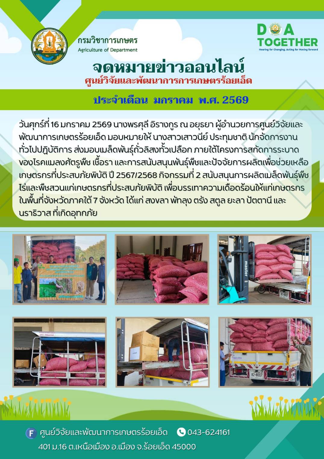 ส่งมอบเมล็ดพันธุ์ถั่วลิสงทั้งเปลือก ภายใต้โครงการสกัดการระบาดของโรคแมลงศัตรูพืช เชื้อรา และการสนับสนุนพันธุ์พืชและปัจจัยการผลิตเพื่อช่วยเหลือเกษตรกรที่ประสบภัยพิบัติ ปี 2567/2568