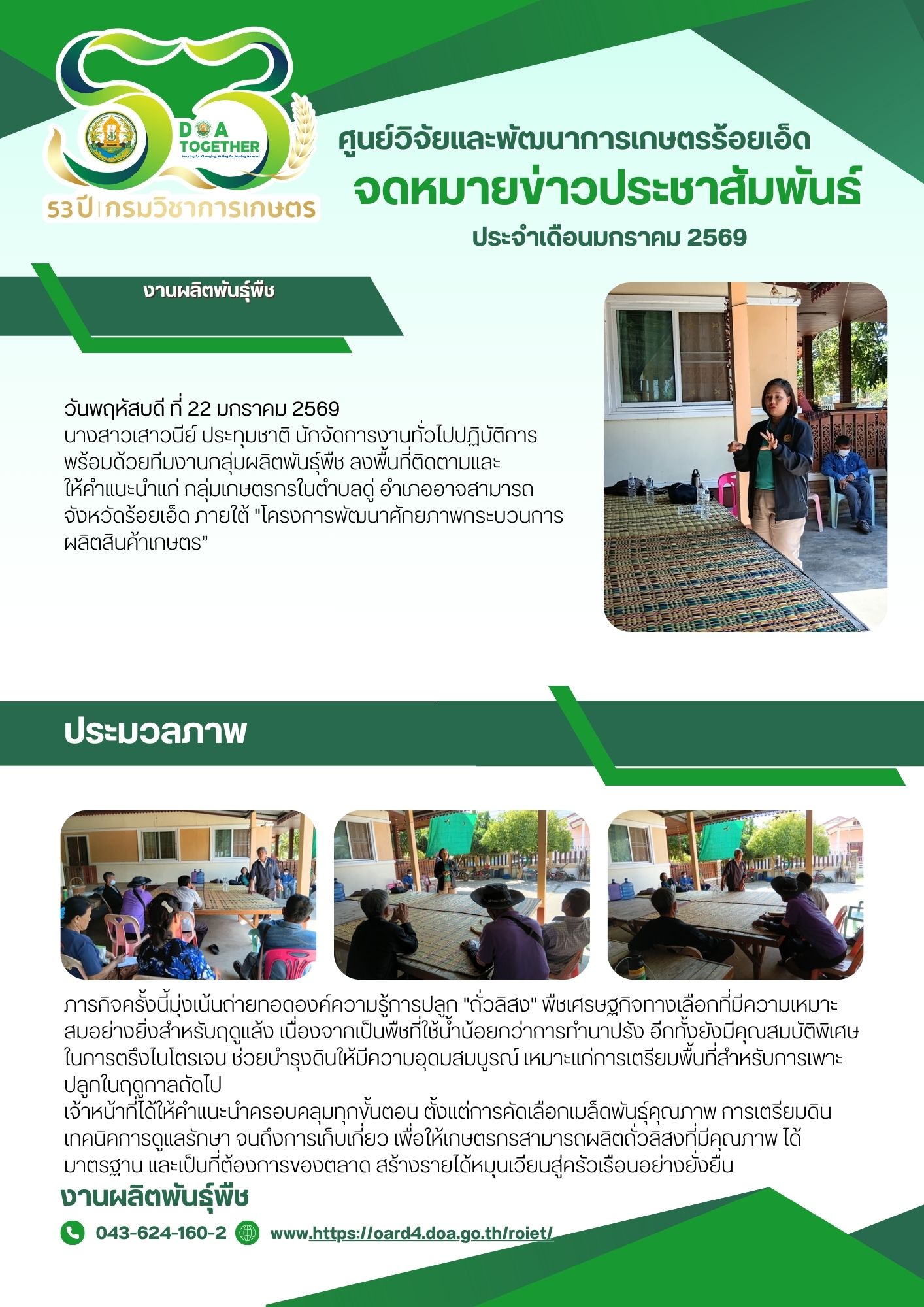 ลงพื้นที่ให้คำแนะนำเกษตรกรที่สนใจปรับเปลี่ยนรูปแบบพื้นที่หลังการทำนา มาปลูกถั่วลิสง ในฤดูแล้ง