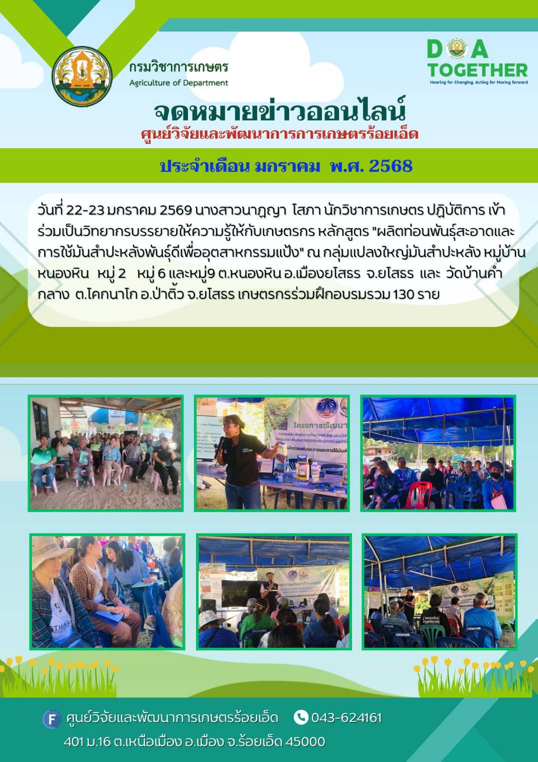 จดหมายข่าว วิทยากรบรรยายให้ความรู้ให้กับผู้เข้าร่วมฝึกอบรม หลักสูตร “ผลิตท่อนพันธุ์สะอาดและการใช้มันสำปะหลังพันธุ์ดีเพื่ออุตสาหกรรมแป้ง28 มกราคม 256928 มกราคม 2026