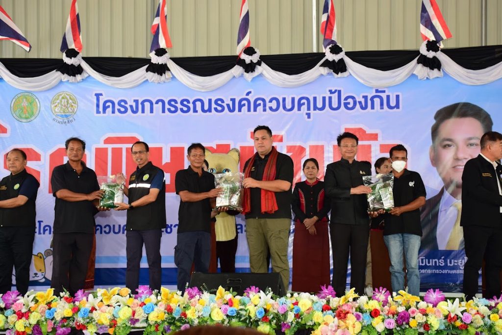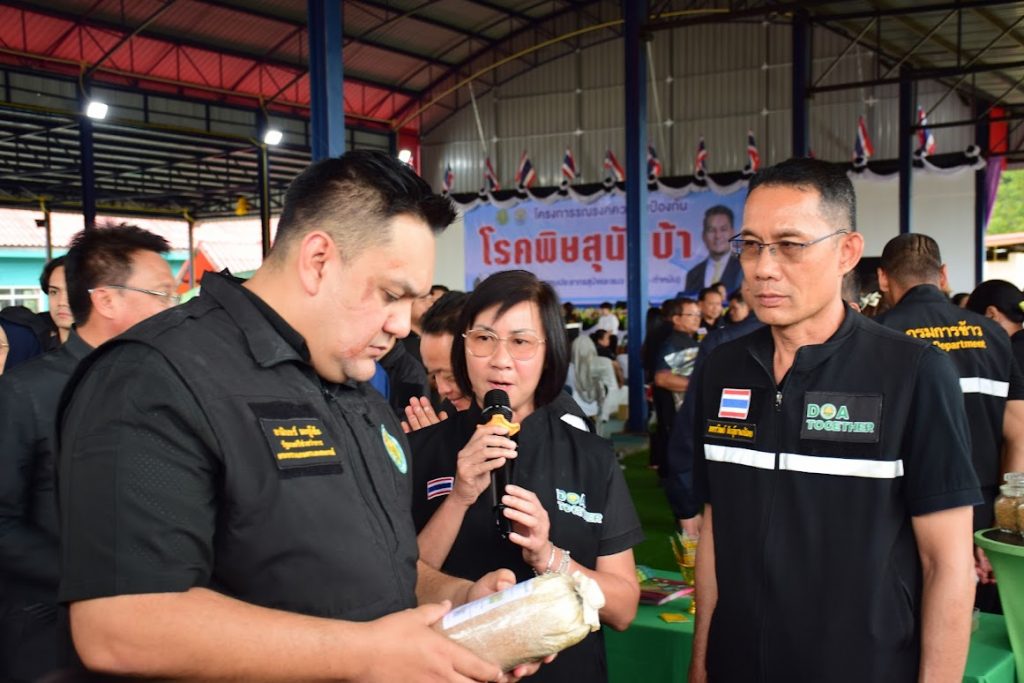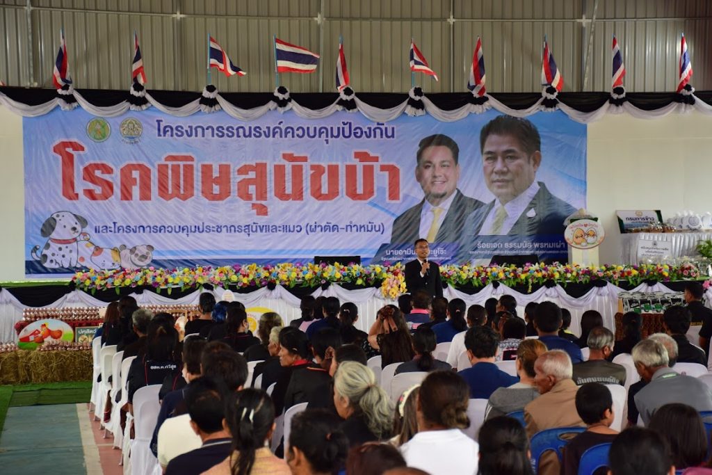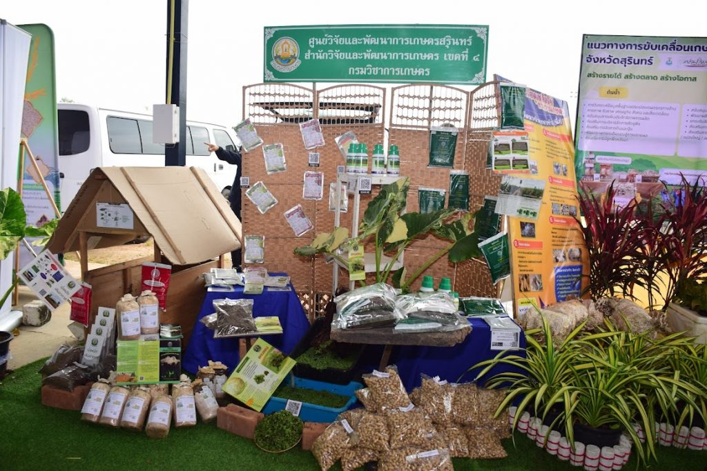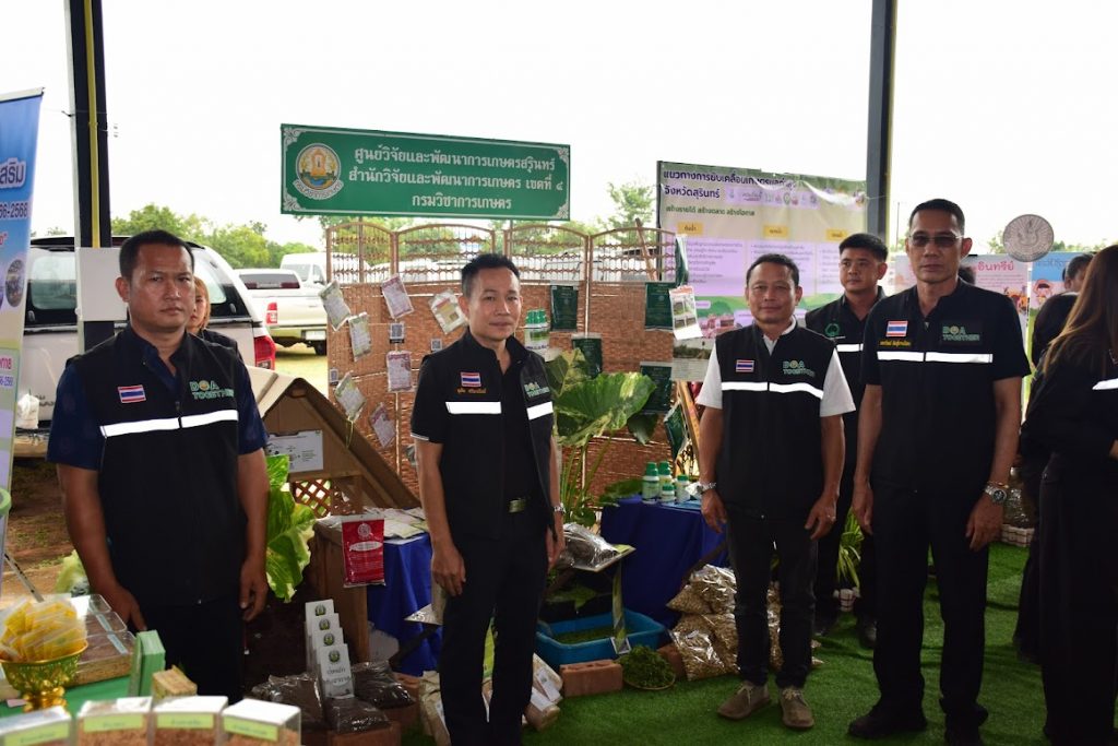 นายขจรวิทย์ พันธุ์ยางน้อย ผู้อำนวยการสำนักวิจัยและพัฒนาการเกษตร เขตที่ 4 นางสาวนิรมล ดำพะธิก ผู้อำนวยการศูนย์วิจัยและพัฒนาการเกษตรสุรินทร์ นายอุทัย ศรีทานันท์ ผู้อำนวยการกลุ่มประสานและบริหารนโยบาย ร่วมลงพื้นที่ตรวจราชการของรัฐมนตรีช่วยว่าการกระทรวงเกษตรและสหกรณ์ (นายอามินทร์ มะยูโซ๊ะ) ใน โครงการรณรงค์ควบคุม ป้องกันโรคพิษสุนัขบ้า และการควบคุมประชากรสุนัขและแมวโดย โครงการดังกล่าวเป็นส่วนหนึ่งของการขับเคลื่อนตาม พระปณิธานศาสตราจารย์ ดร. สมเด็จเจ้าฟ้าฯ กรมพระศรีสวาง ควัฒน วรขัตติยราชนารี ภายใต้ชื่อ “โครงการสัตว์ปลอดโรค คนปลอดภัยจากโรคพิษสุนัขบ้า” จุดที่ 1 เวลา 10.00 น. ณ. โดมอเนกประสงค์องค์การบริหารตำบลศรีสุข อำเภอสำโรงทาบ จังหวัดสุรินทร์ ศูนย์วิจัยฯสุรินทร์ ได้ร่วมจัดนิทรรศการ เรื่องการใช้สารชีวภัณฑ์ และมอบชุดชีวภัณฑ์ บนเวทีจำนวน 10 ชุด และแจกจ่ายชีวภัณฑ์ให้แก่เกษตรกรที่มาร่วมงาน จำนวน 100 ถุง ได้แก่ BS,แหนแดง, PGPR-1, PGPR-3, ปุ๋ยหมักเติมอากาศ ทั้งนี้ มีคณะผู้บริหารกระทรวงเกษตรและสหกรณ์ หัวหน้าส่วนราชการสังกัดกระทรวงเกษตรและสหกรณ์จังหวัดสุรินทร์ หัวหน้าส่วนราชการระดับจังหวัดและระดับอำเภอที่เกี่ยวข้อง เข้าร่วมกิจกรรมดังกล่าว