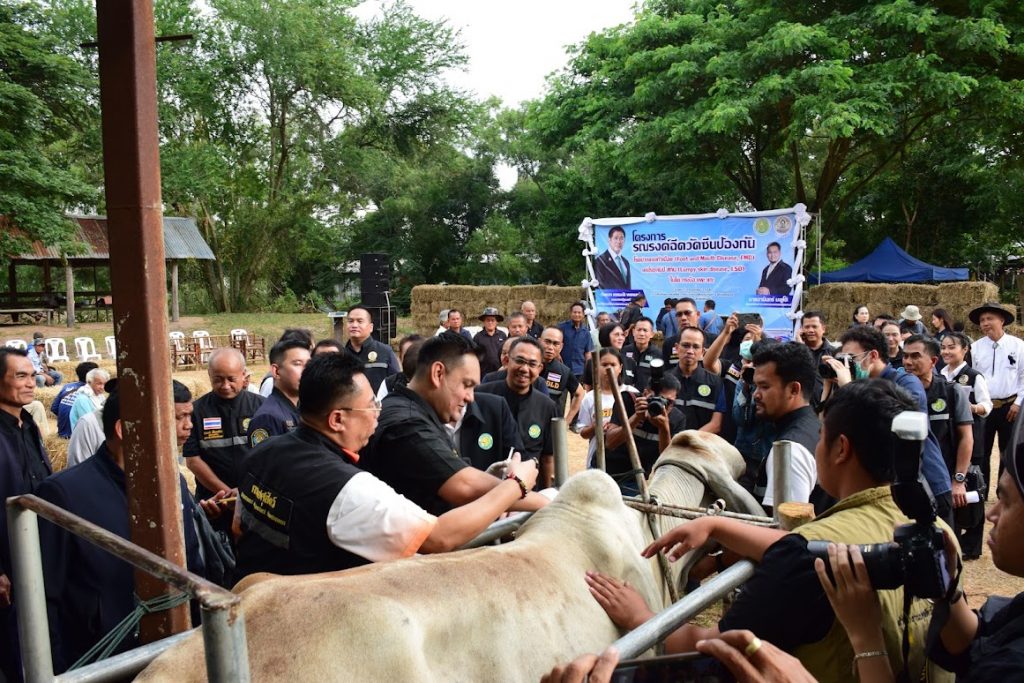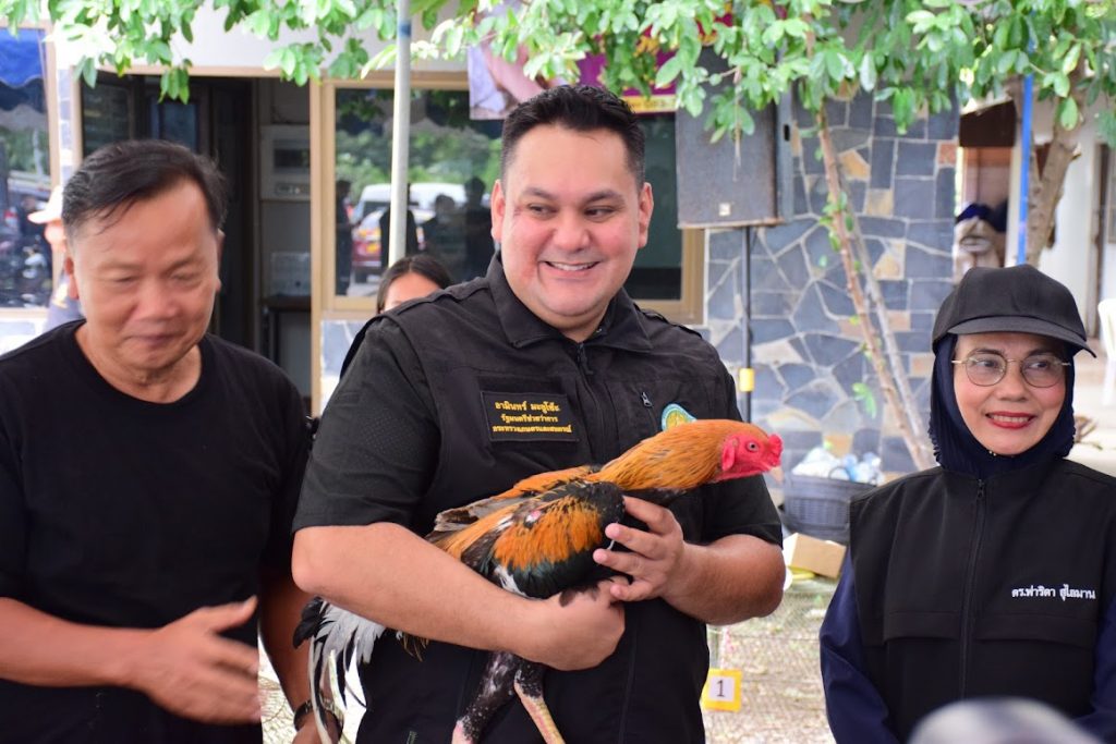 นายขจรวิทย์ พันธุ์ยางน้อย ผู้อำนวยการสำนักวิจัยและพัฒนาการเกษตร เขตที่ 4 นางสาวนิรมล ดำพะธิก ผู้อำนวยการศูนย์วิจัยและพัฒนาการเกษตรสุรินทร์ นายอุทัย ศรีทานันท์ ผู้อำนวยการกลุ่มประสานและบริหารนโยบาย ร่วมลงพื้นที่ตรวจราชการของรัฐมนตรีช่วยว่าการกระทรวงเกษตรและสหกรณ์ (นายอามินทร์ มะยูโซ๊ะ) ใน โครงการรณรงค์ควบคุม ป้องกันโรคพิษสุนัขบ้า และการควบคุมประชากรสุนัขและแมวโดย โครงการดังกล่าวเป็นส่วนหนึ่งของการขับเคลื่อนตาม พระปณิธานศาสตราจารย์ ดร. สมเด็จเจ้าฟ้าฯ กรมพระศรีสวาง ควัฒน วรขัตติยราชนารี ภายใต้ชื่อ “โครงการสัตว์ปลอดโรค คนปลอดภัยจากโรคพิษสุนัขบ้า”จุดที่ 2 เวลา 14.00 น. ณ.ตลาดนัดโค – กระบือ ต.ระแงง อ.ศรีขรภูมิ จ.สุรินทร์ มอบชุดชีวภัณฑ์บนเวที จำนวน 10 ชุด ทั้งนี้ มีคณะผู้บริหารกระทรวงเกษตรและสหกรณ์ หัวหน้าส่วนราชการสังกัดกระทรวงเกษตรและสหกรณ์จังหวัดสุรินทร์ หัวหน้าส่วนราชการระดับจังหวัดและระดับอำเภอที่เกี่ยวข้อง เข้าร่วมกิจกรรมดังกล่าว![]()