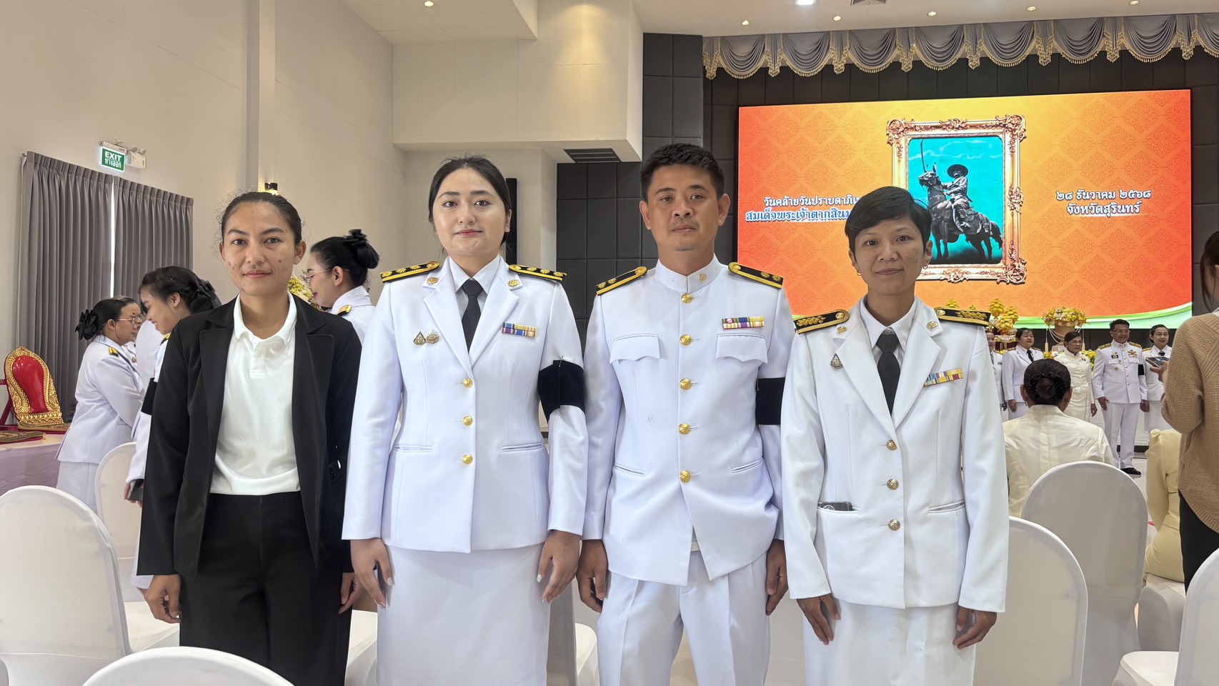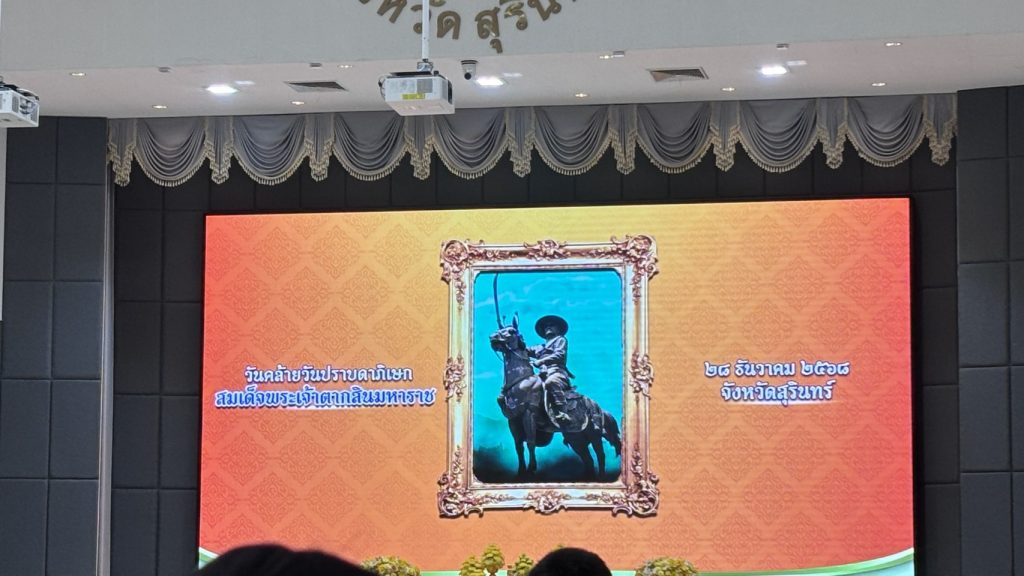 นางสาวนิรมล ดำพะธิก ผู้อำนวยการศูนย์วิจัยและพัฒนาการเกษตรสุรินทร์ มอบหมายให้ นางสาวจิรภัทร ขำพรหมราช เจ้าพนักงานธุรการปฏิบัติงาน พนักงานราชการ ศูนย์วิจัยฯ สุรินทร์ ร่วมพิธีสวดพระพุทธมนต์ถวายพระราชกุศล และพิธีวางพานพุ่มดอกไม้ถวายราชสักการะ เนื่องในวันสมเด็จพระเจ้าตากสินมหาราช ประจำปี 2568 ณ หอประชุมจังหวัดสุรินทร์ นายจำเริญ แหวนเพ็ชร ผู้ว่าราชการจังหวัดสุรินทร์ มอบหมายให้นายประภาส ศรีจันทร์เวียง รองผู้ว่าราชการจังหวัดสุรินทร์ เป็นประธานในพิธีสวดพระพุทธมนต์ถวายพระราชกุศล และพิธีวางพานพุ่มดอกไม้ถวายราชสักการะ เนื่องในวันสมเด็จพระเจ้าตากสินมหาราช