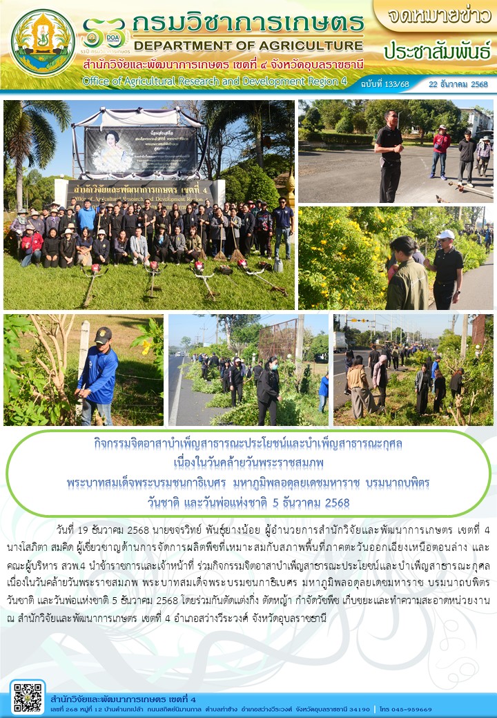 ข่าวกิจกรรม กิจกรรมจิตอาสาบำเพ็ญสาธารณะประโยชน์และบำเพ็ญสาธารณะกุศล เนื่องในวันคล้ายวันพระราชสมภพ พระบาทสมเด็จพระบรมชนกาธิเบศร มหาภูมิพลอดุลยเดชมหาราช บรมนาถบพิตร วันชาติ และวันพ่อแห่งชาติ 5 ธันวาคม 2568โดย กิตติภัทร บุคจำปา วันที่ 22 ธันวาคม 256822 ธันวาคม 2025 2 อ่านเพิ่มเติม→