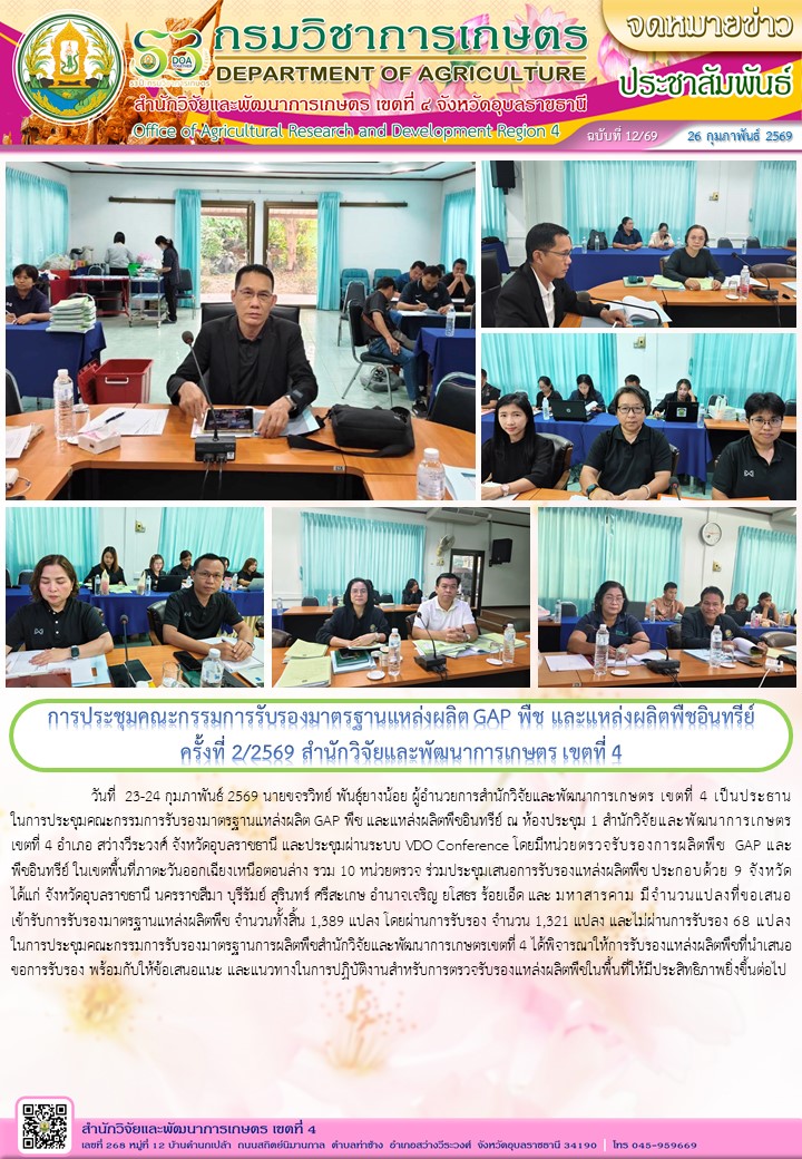 ข่าวกิจกรรม การประชุมคณะกรรมการรับรองมาตรฐานแหล่งผลิต GAP พืช และแหล่งผลิตพืชอินทรีย์ครั้งที่ 2/2569 สำนักวิจัยและพัฒนาการเกษตร เขตที่ 4โดย กิตติภัทร บุคจำปา วันที่ 26 กุมภาพันธ์ 256926 กุมภาพันธ์ 2026 1 อ่านเพิ่มเติม→