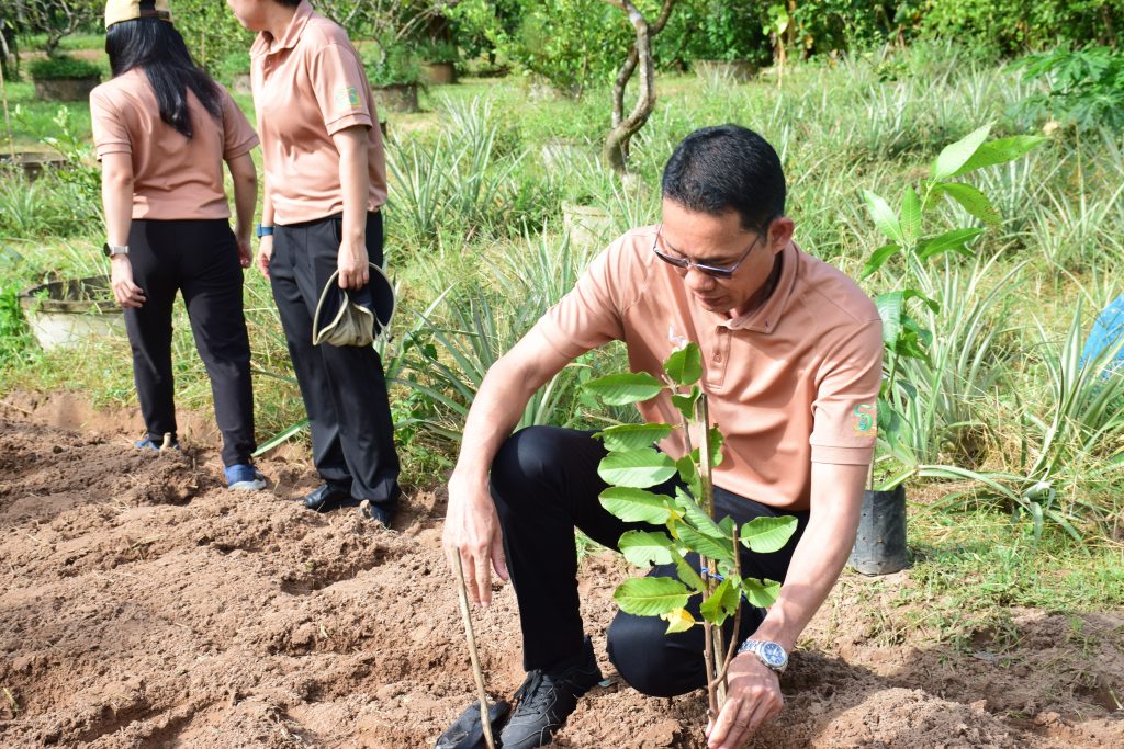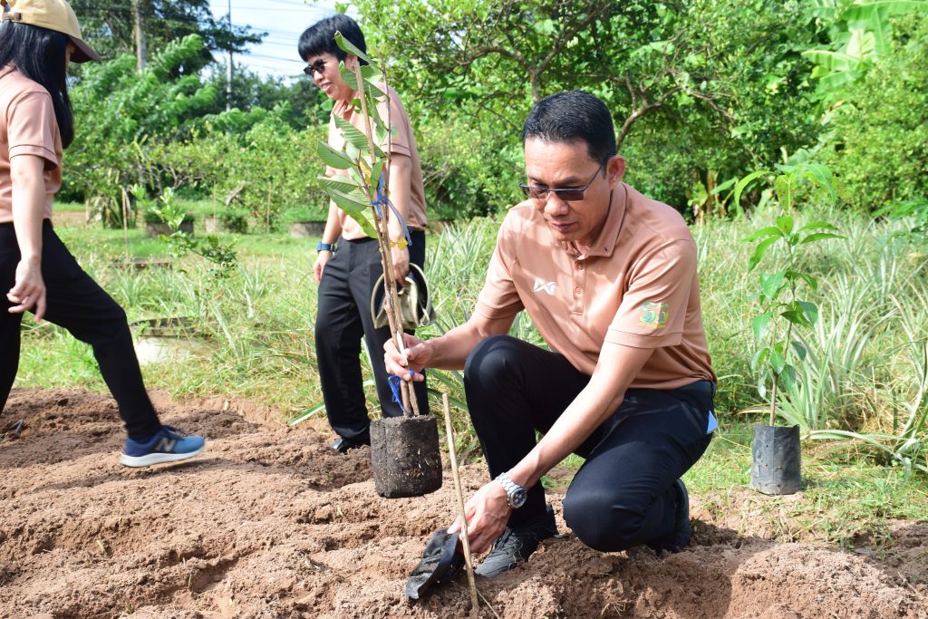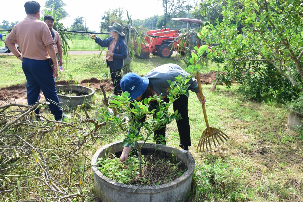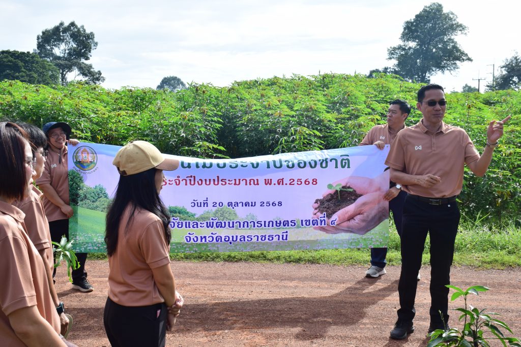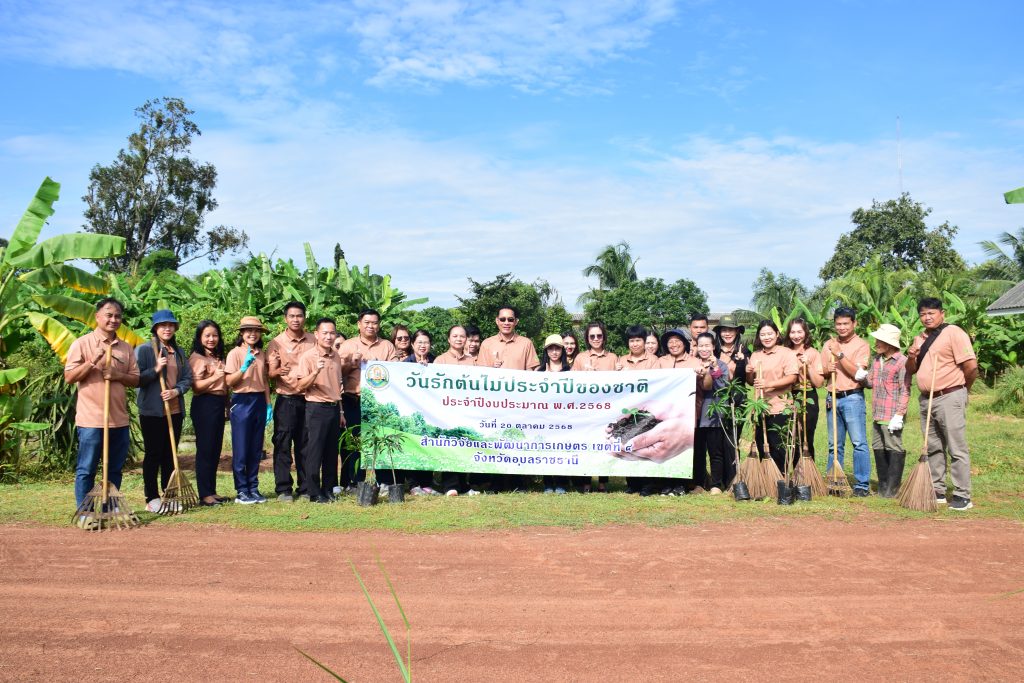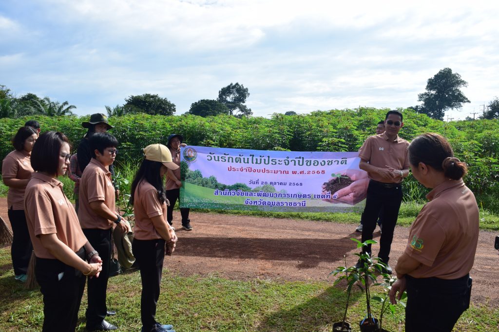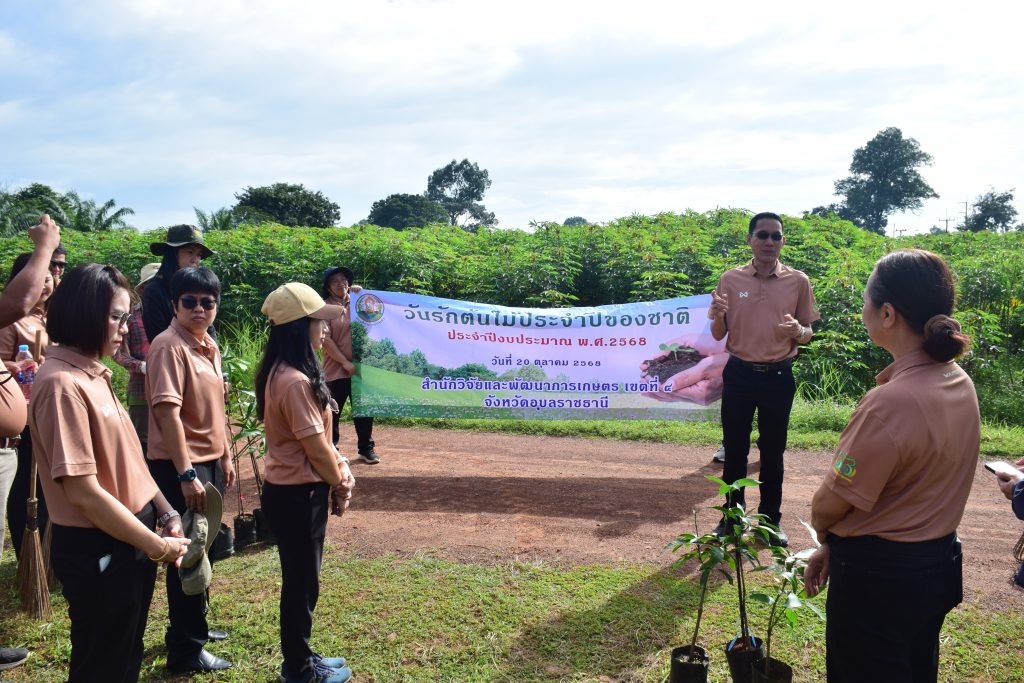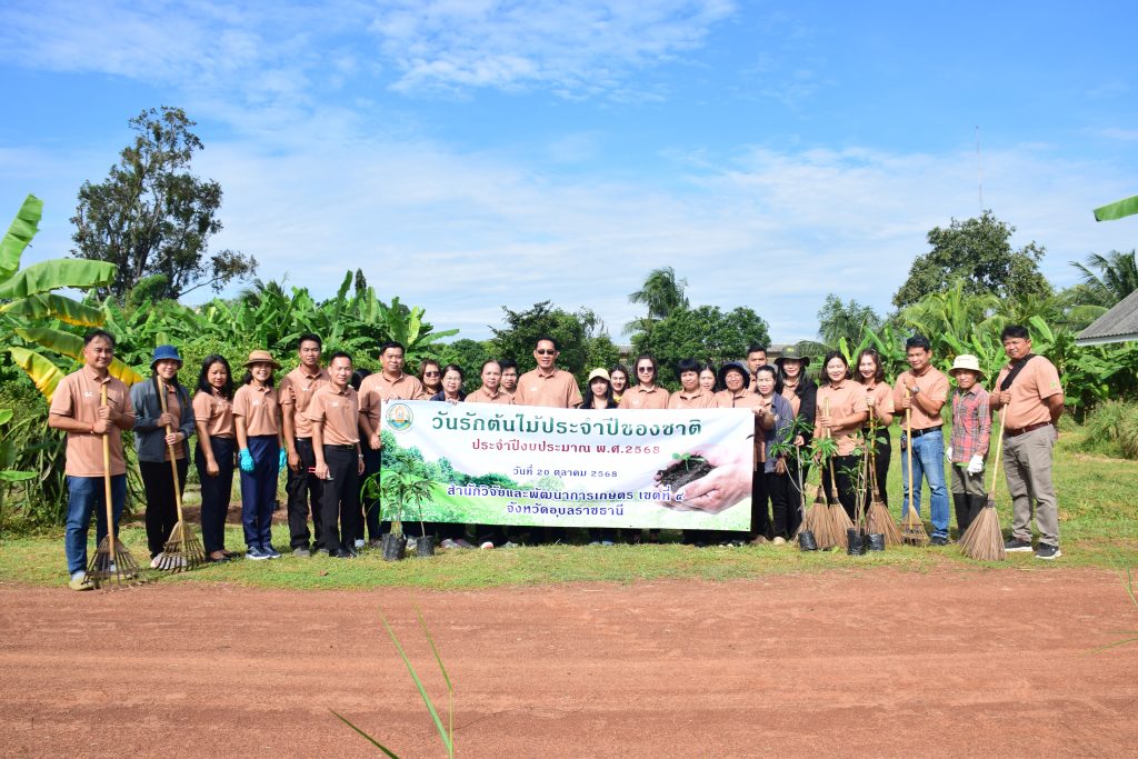 วันที่ 20 ตุลาคม 2568 นายขจรวิทย์ พันธุ์ยางน้อย ผู้อำนวยการสำนักวิจัยและพัฒนาการเกษตร เขตที่ 4 พร้อมด้วยข้าราชการ และเจ้าหน้าที่ในสังกัด ร่วมกันจัดกิจกรรม“วันรักต้นไม้ประจำปีของชาติ พ.ศ. 2568” เพื่อน้อมรำลึกถึงพระมหากรุณาธิคุณของสมเด็จพระศรีนครินทราบรมราชชนนี และเป็นการสร้างจิตสำนึกให้เกิดความหวงแหนทรัพยากรป่าไม้ของชาติ โดยร่วมกันปลูกต้นฝรั่ง พันธุ์กิมจู จำนวน 8 ต้น กำจัดวัชพืช ตัดแต่งกิ่งไม้ และทำความสะอาดบริเวณศูนย์เรียนรู้การผลิตพืชตามหลักปรัชญาเศรษฐกิจพอเพียง สำนักวิจัยและพัฒนาการเกษตร เขตที่ 4