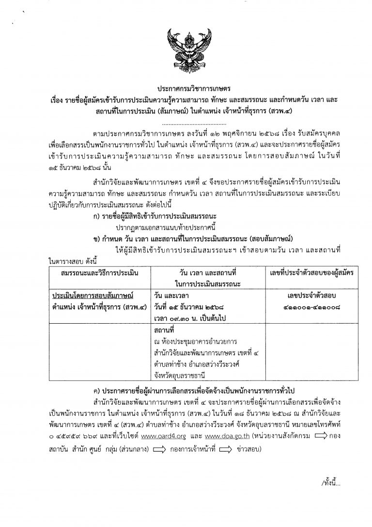 ข่าวรับสมัครงาน ประกาศรายชื่อผู้สมัครเข้ารับการประเมินความรู้ความสามารถ ทักษะ และสมรรถนะ และกำหนดวัน เวลา และสถานที่ในการประเมิน (สัมภาษณ์) ในตำแหน่ง เจ้าหน้าที่ธุรการ (สวพ.๔)โดย กิตติภัทร บุคจำปา วันที่ 4 ธันวาคม 25684 ธันวาคม 2025 29 อ่านเพิ่มเติม→
