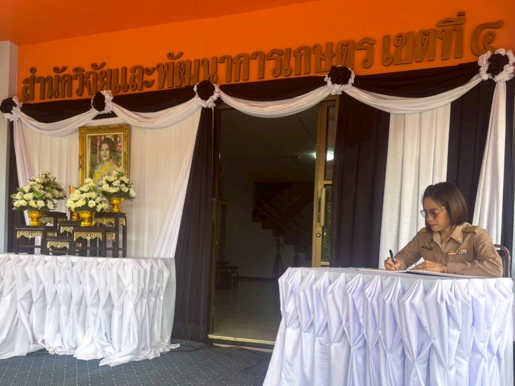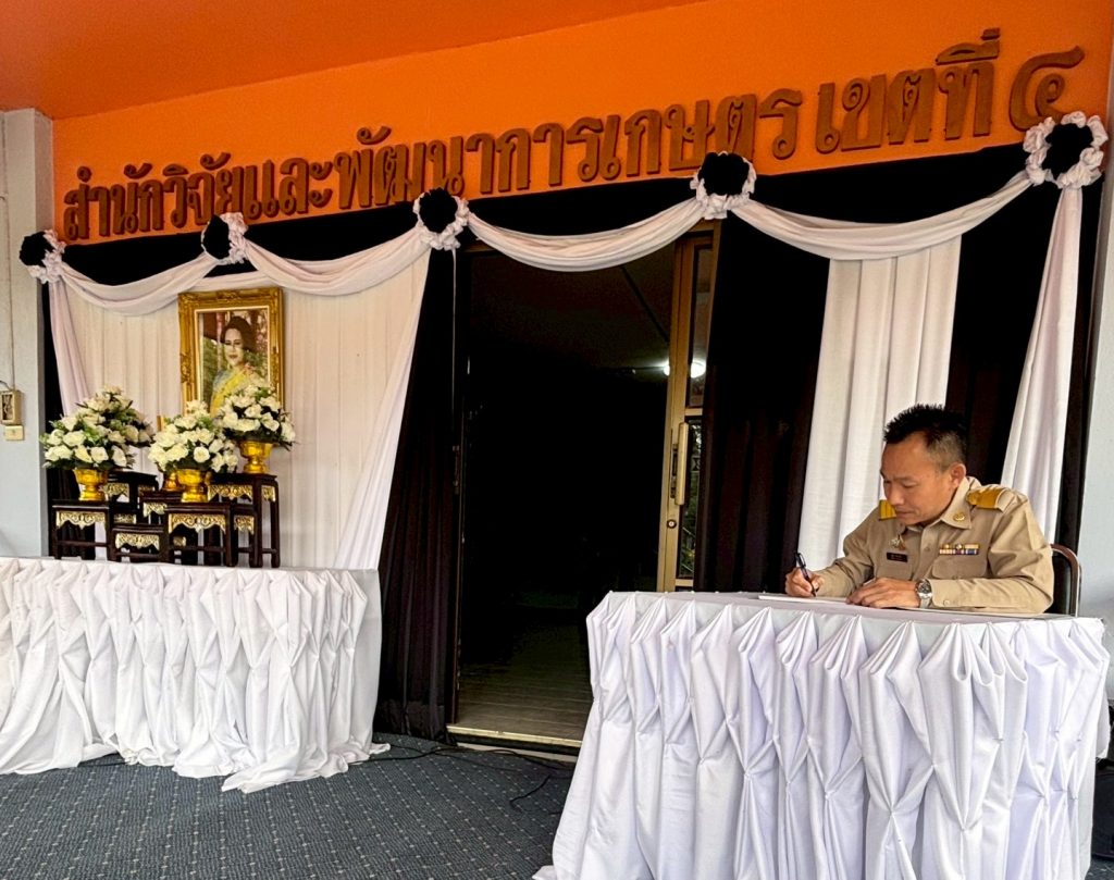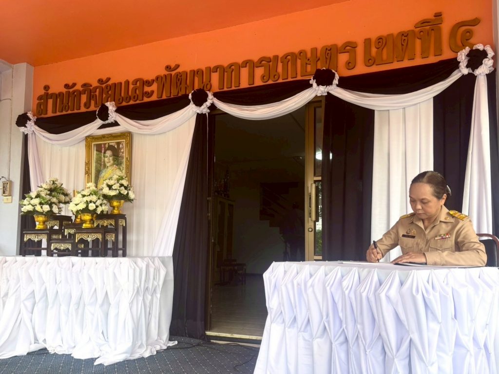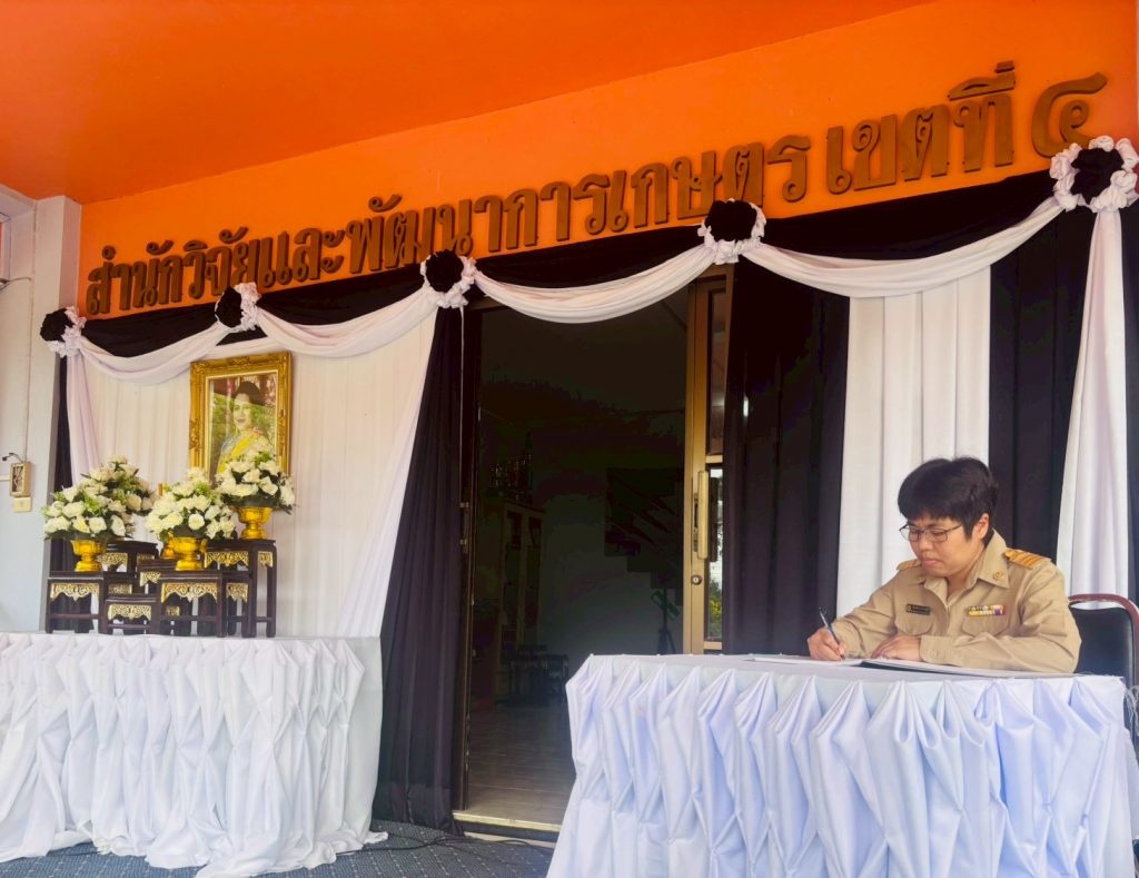 สำนักวิจัยและพัฒนาการเกษตร เขตที่ 4 (จังหวัดอุบลราชธานี) จัดพิธีถวายความอาลัย สมเด็จพระนางเจ้าสิริกิติ์ พระบรมราชินีนาถ พระบรมราชชนนีพันปีหลวงวันที่ 28 ตุลาคม 2568 นายขจรวิทย์ พันธุ์ยางน้อย ผู้อำนวยการสำนักวิจัยและพัฒนาการเกษตร เขตที่ 4 (จังหวัดอุบลราชธานี) เป็นประธานในพิธีถวายความอาลัย สมเด็จพระนางเจ้าสิริกิติ์ พระบรมราชินีนาถ พระบรมราชชนนีพันปีหลวง โดยได้กล่าวคำถวายความอาลัยและน้อมรำลึกในพระมหากรุณาธิคุณอันหาที่สุดมิได้ พร้อมนำผู้เข้าร่วมพิธียืนสงบนิ่งถวายความอาลัยเป็นเวลา 1 นาที และร่วมลงนามในสมุดถวายความอาลัย