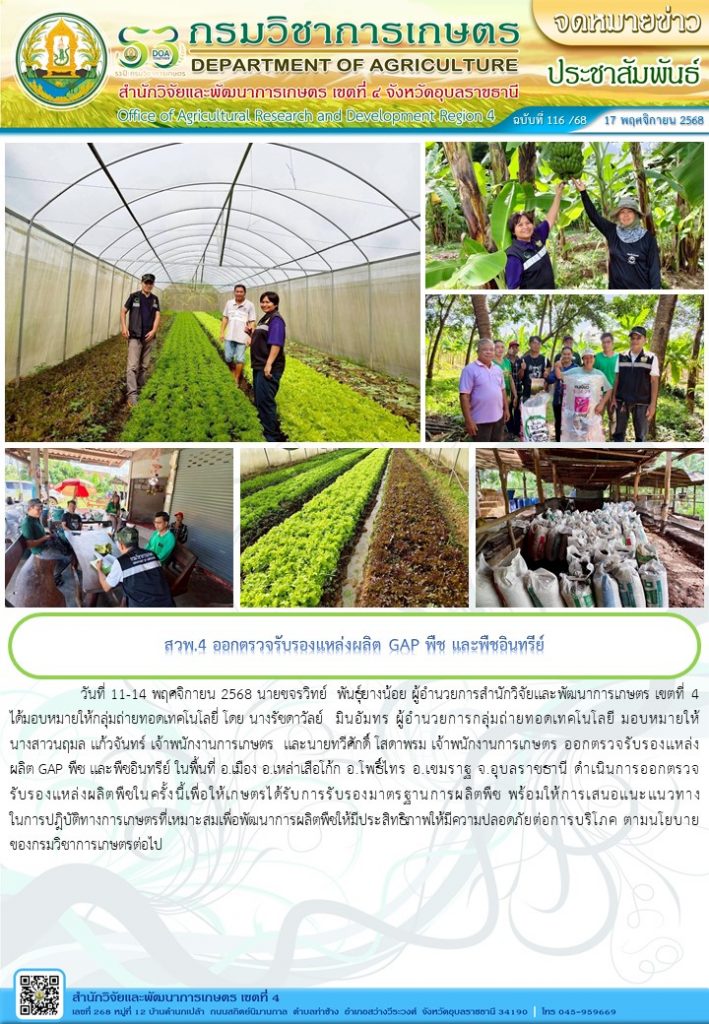 • การตรวจสอบรับรองมาตรฐานผลิตพืช
